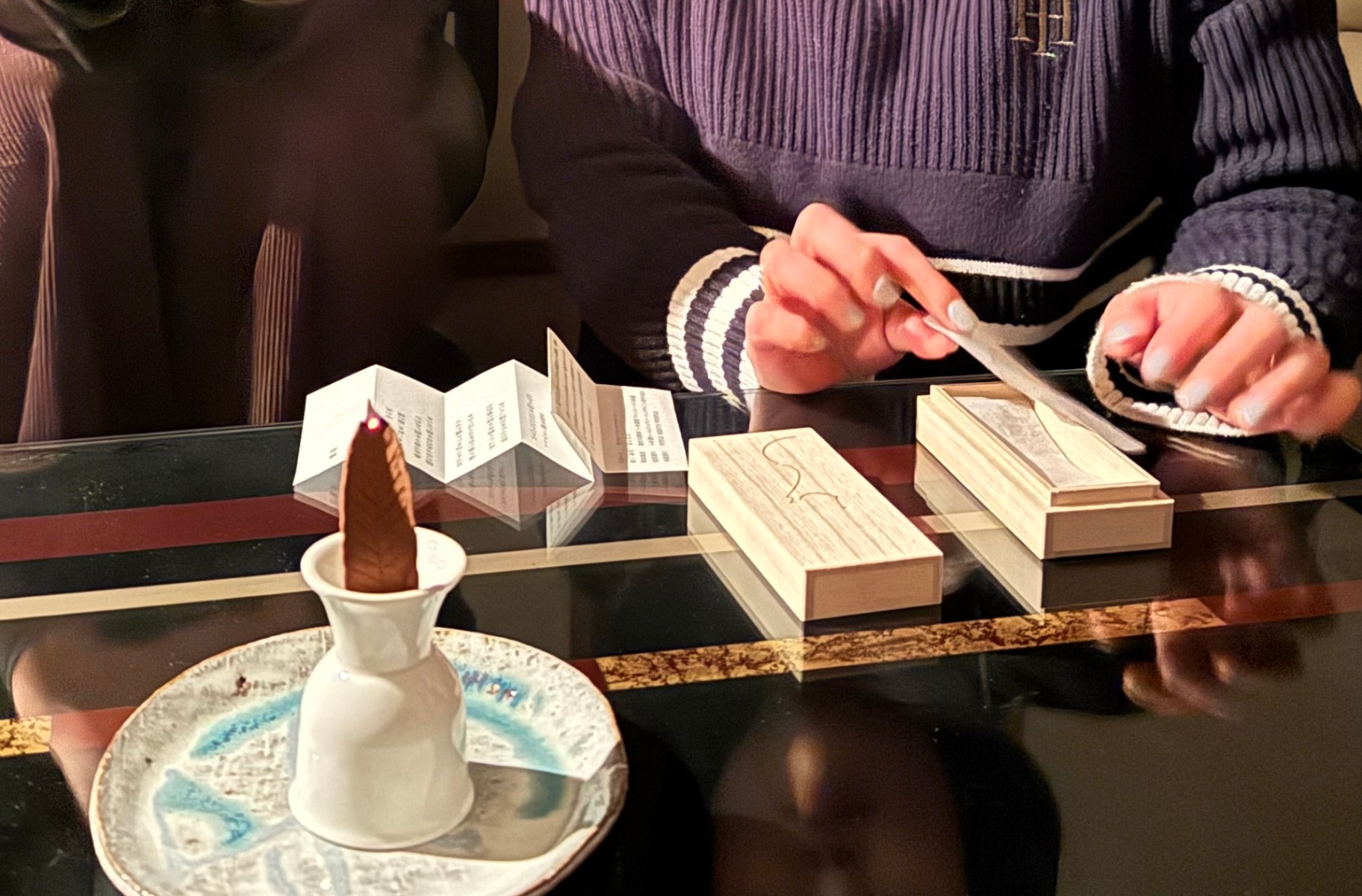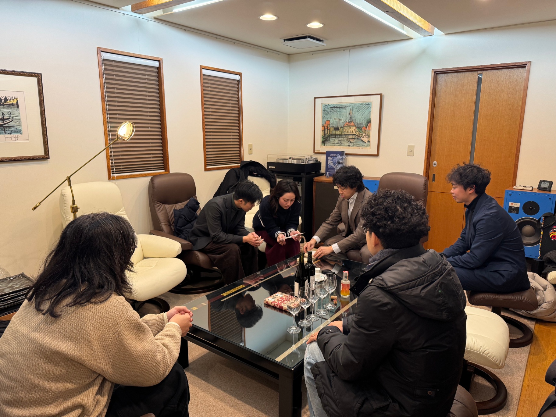 ライトを落として火をつける瞬間、場がしんと静まり返り、どこか神秘的な空気が漂いました。ゆっくりと立ち上った煙にお二人が顔を近づけ、「確かに小布施の香りがする」とつぶやかれた場面は、つくり手として胸に残るひとときでした。