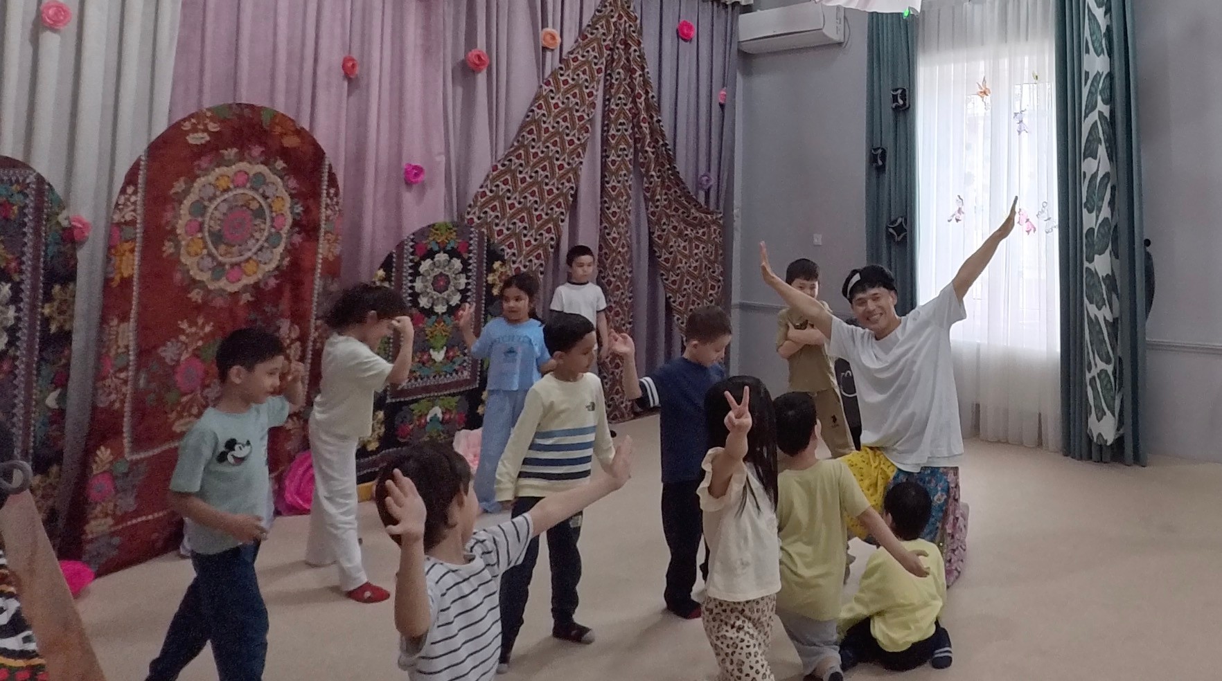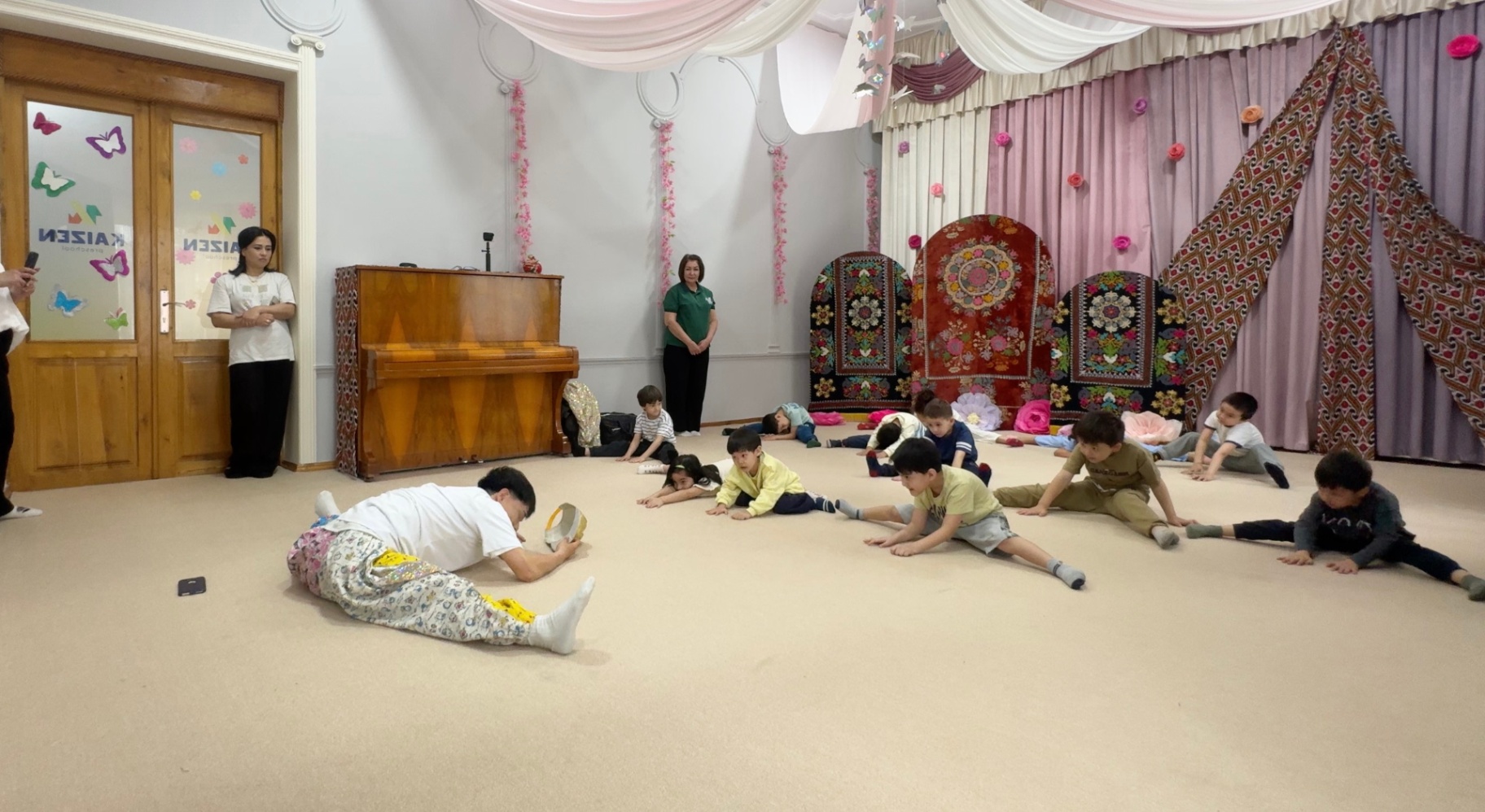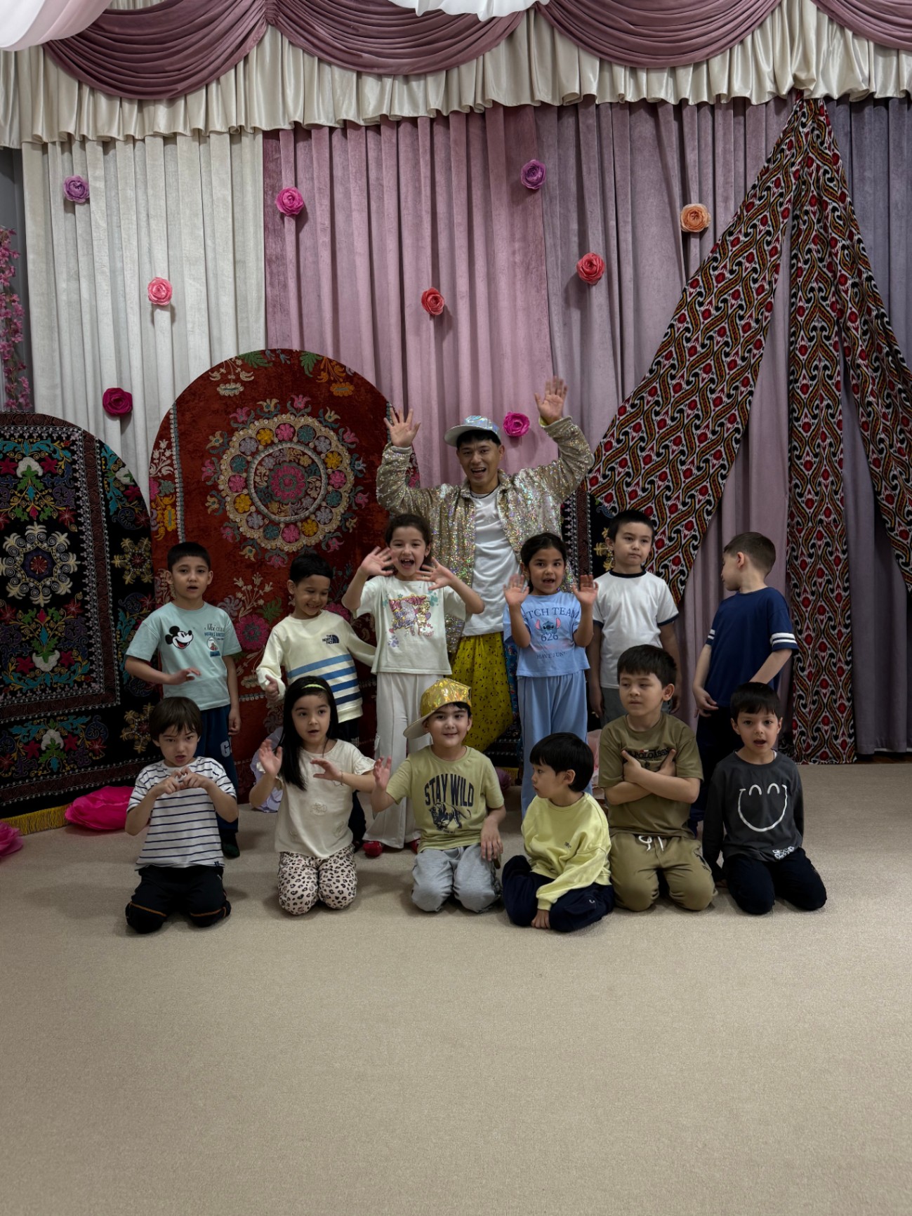 ウズベキスタン、タシュケントにある「Kaizen Preschool」という私立の幼稚園・保育施設に訪問し、ダンス体験とお話会を行いました。