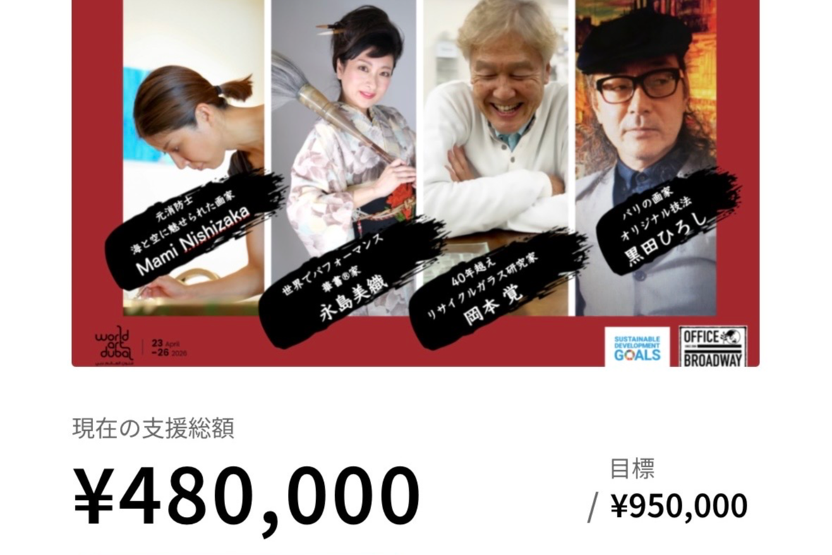 こんにちは!4/1まであと数日。たくさん支援していただき感謝しています。ワールドアートドバイのオーガナイザーから公式発表がありました。11月19から22日になりました。ドバイはベストシーズンです。なので外の展示や...