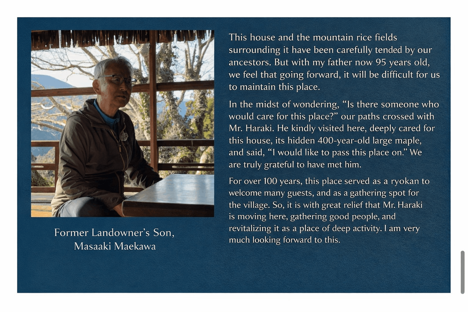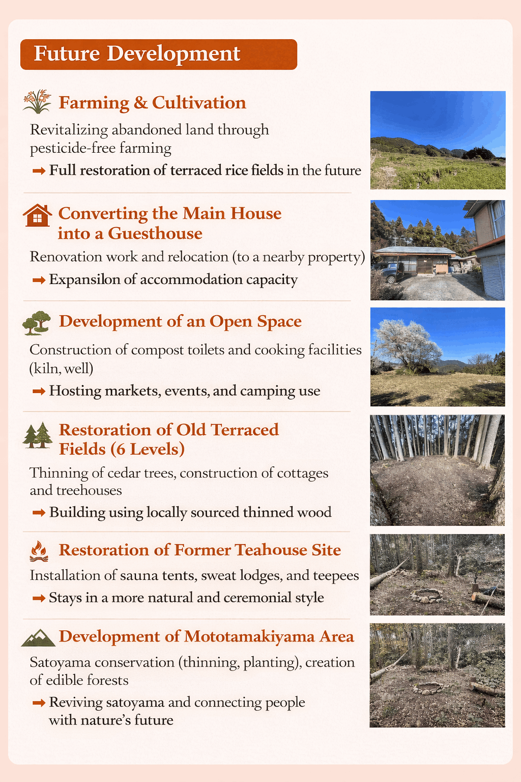 Our vision goes beyond operating a lodging facility—we aim to restore ways of living rooted in the land, together with local residents.