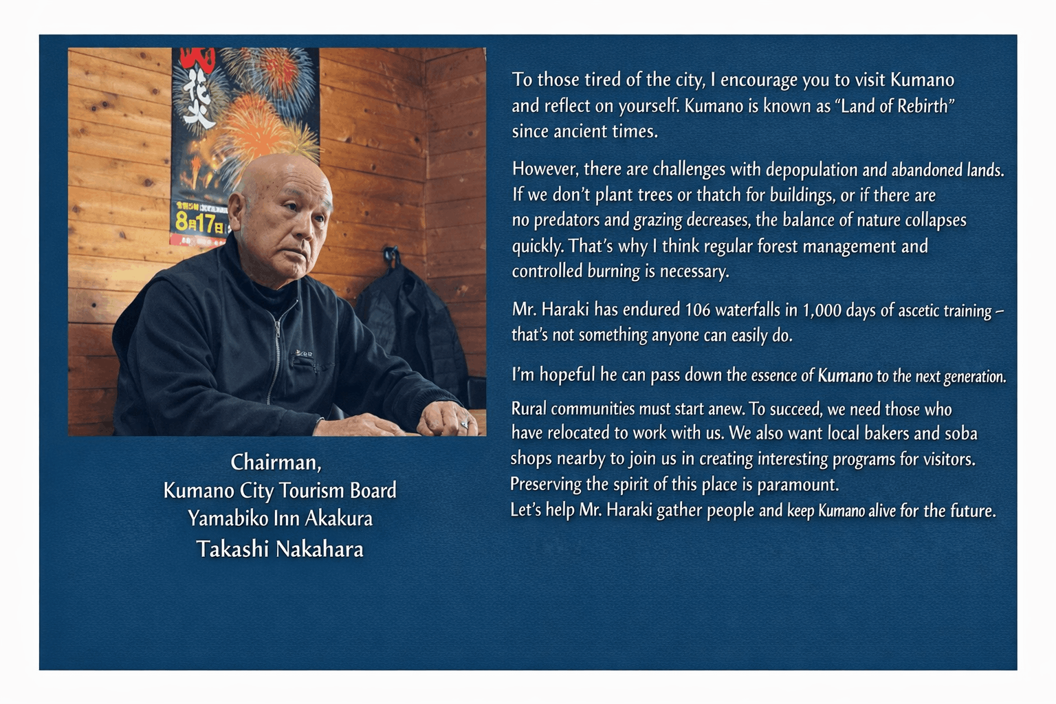 At present, through the practice of Shugendō, I am working to create a place for “nurturing life and renewal,” centered on nature and prayer.