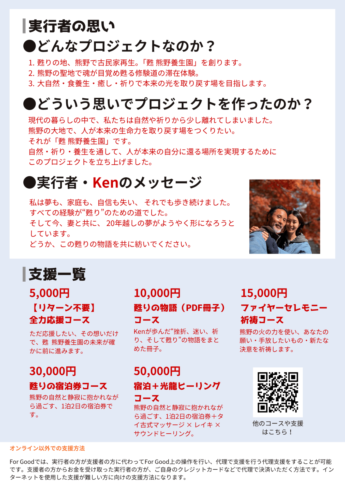 プロジェクト実行者が支援金を全額受け取れるよう、支援者さまからのシステム利用料(220円+決済手数料5%)により運営しています。
