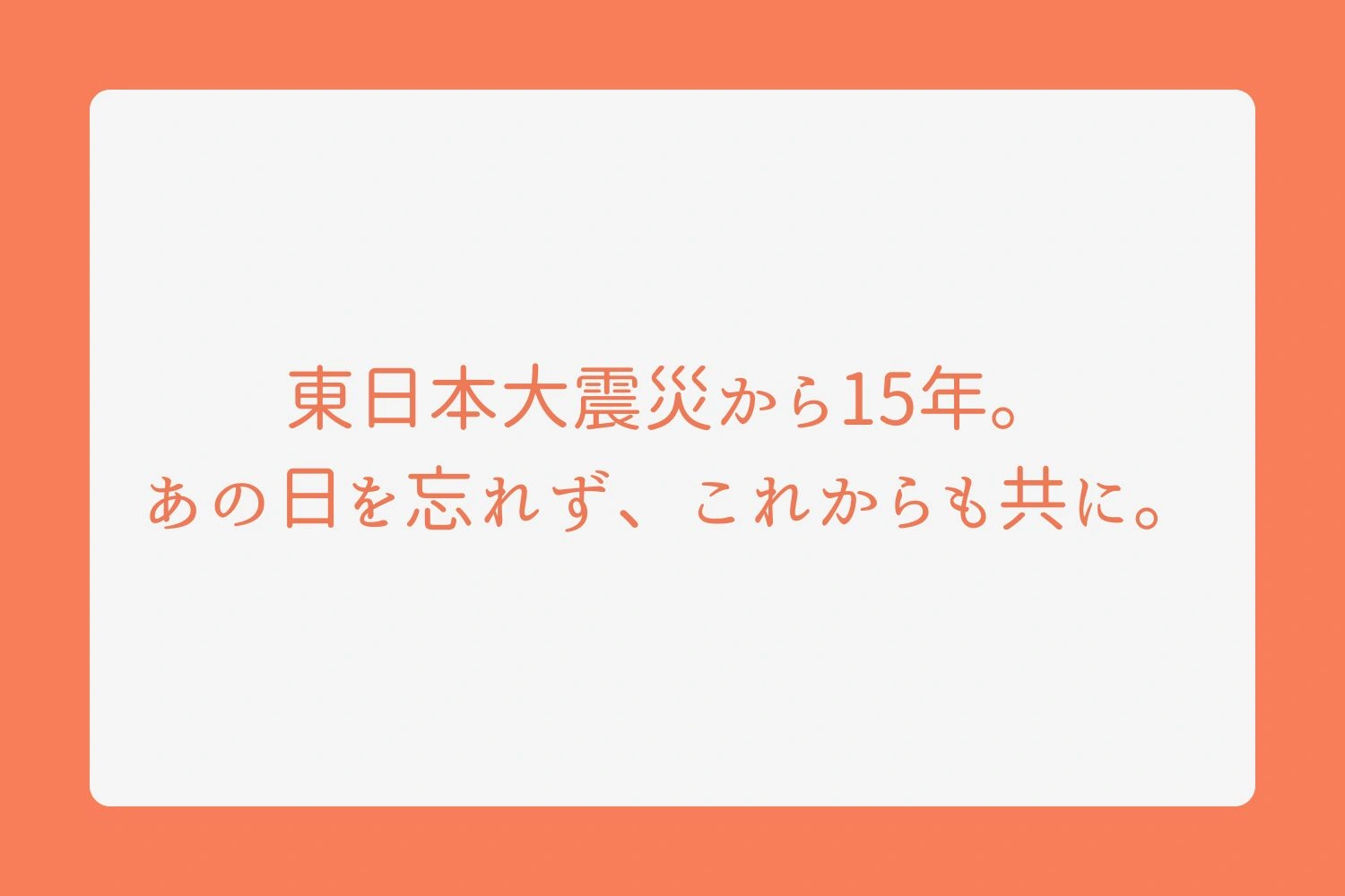 東日本大震災から15年。あの日を忘れず、これからも共に。