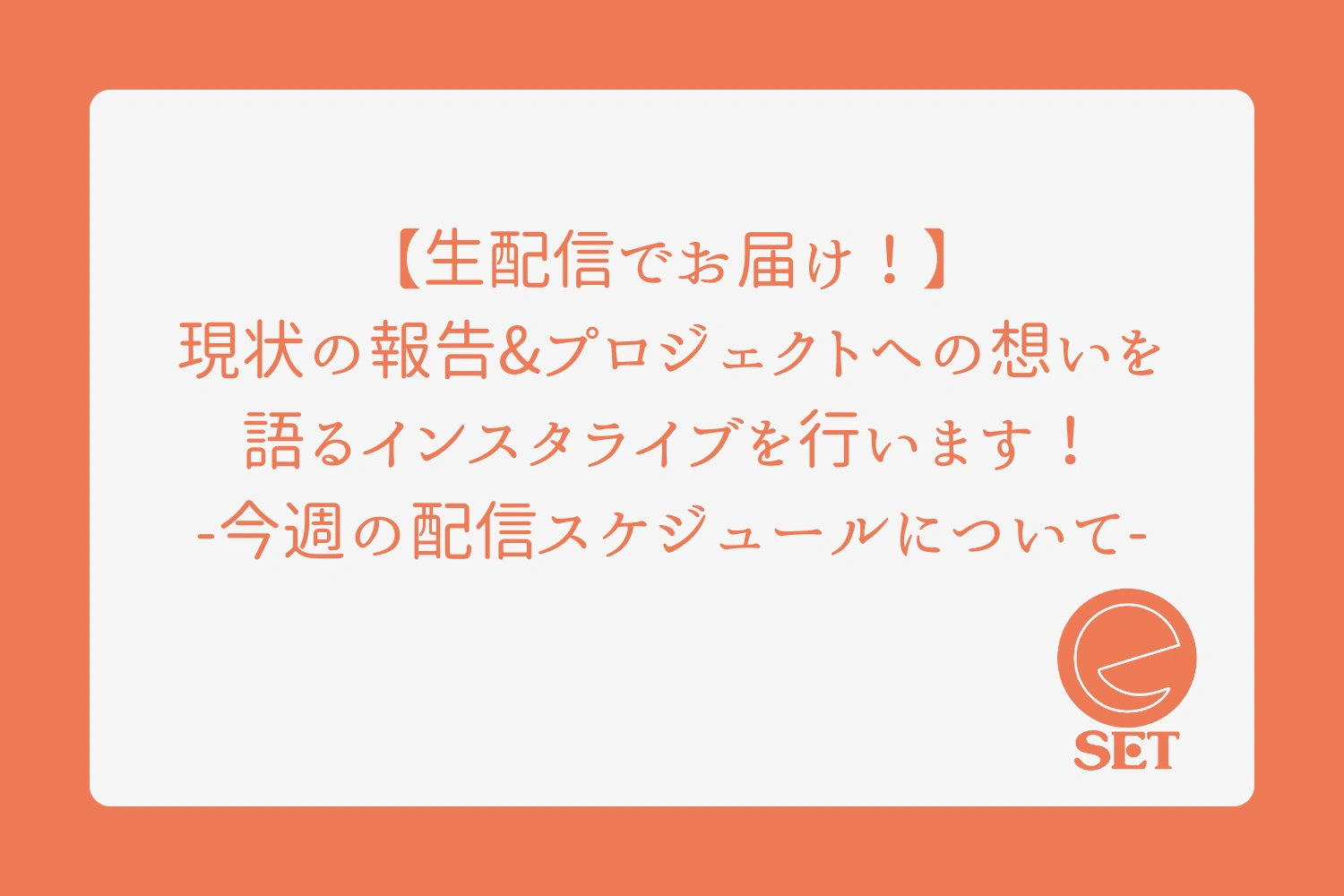 【生配信でお届け!】インスタライブを行います! -今週の配信スケジュールについて