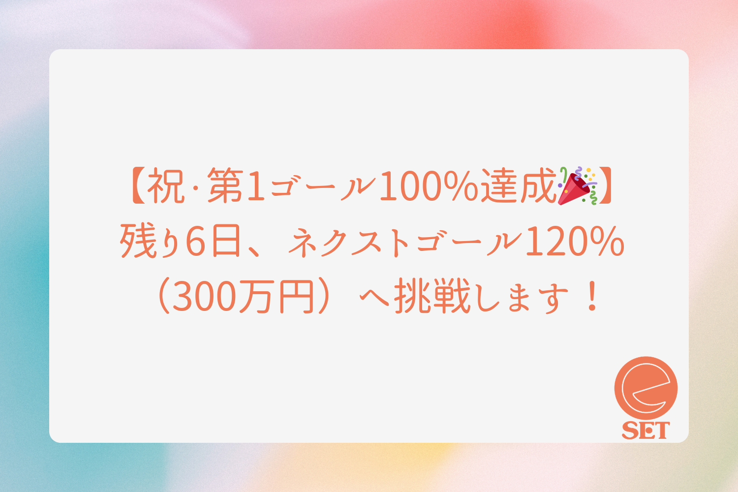 現在、私たちは【ネクストゴール:120%(300万円)】に向けて、残りの期間を全力で走り抜けています。
