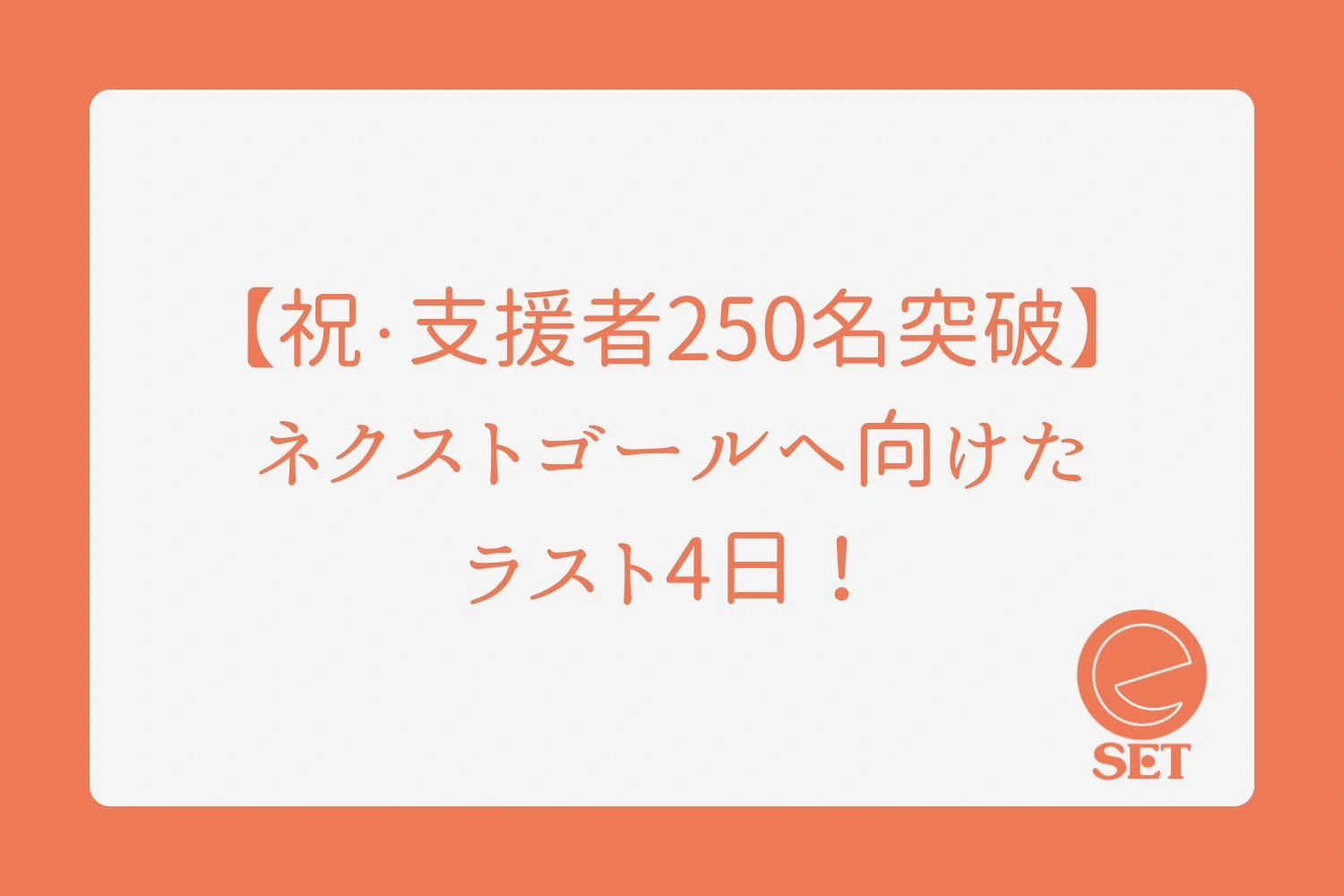 第一ゴール(100%)達成後もご支援が続き、現在なんと【253名】の方々から、総額260万円を超える温かいご支援が集まっております!✨