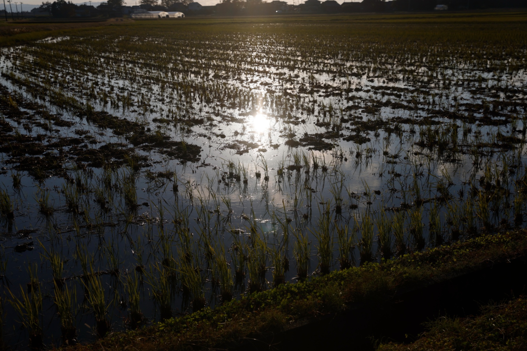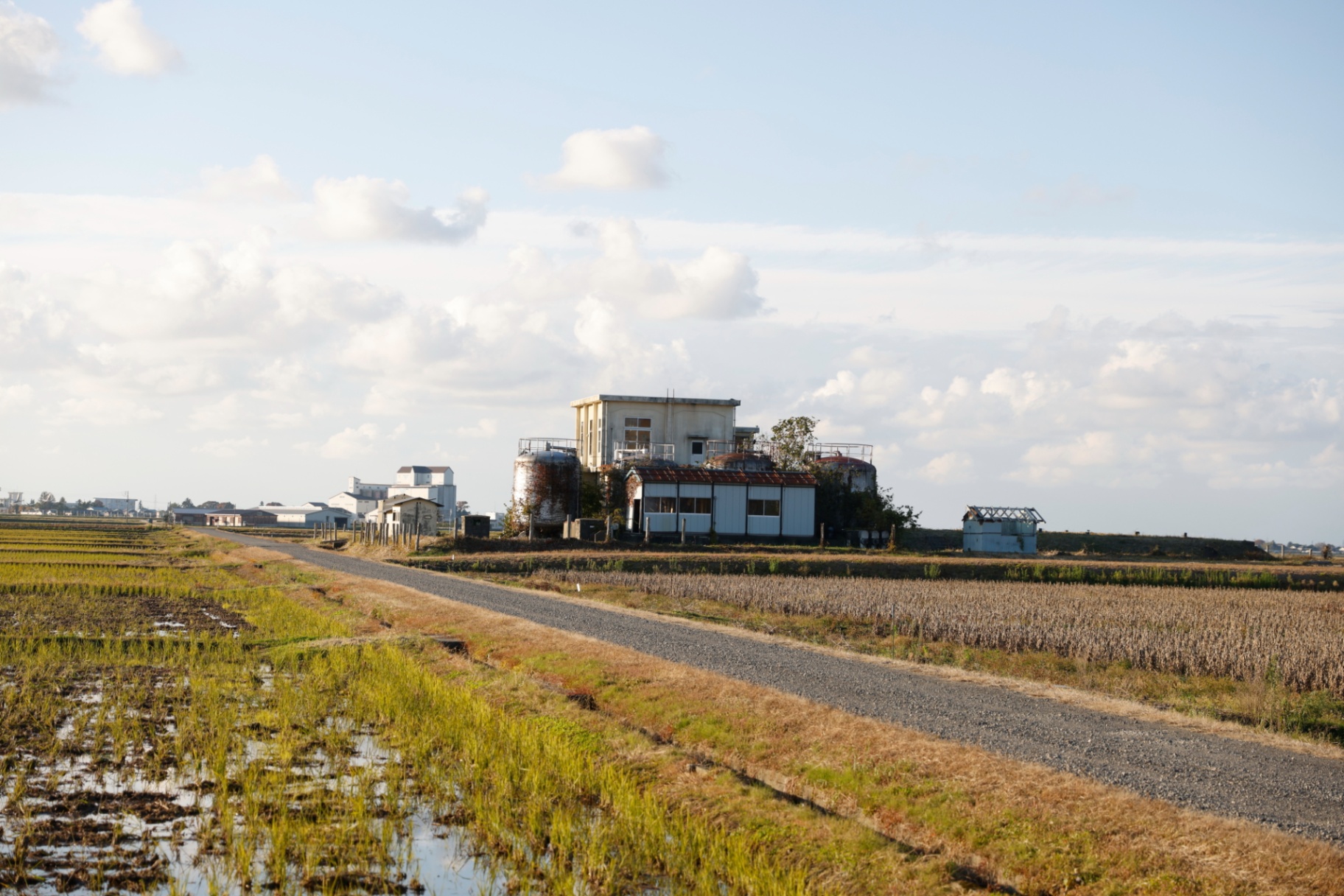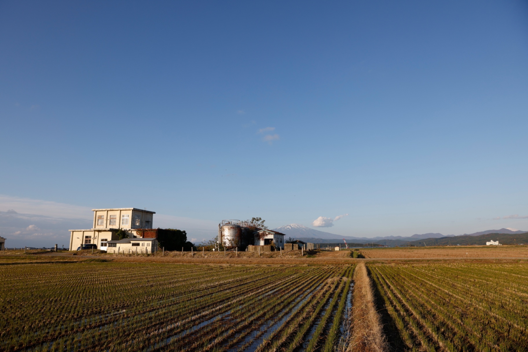 建物の周りを見渡すと、地平線まで続くような見渡す限りの田んぼ。