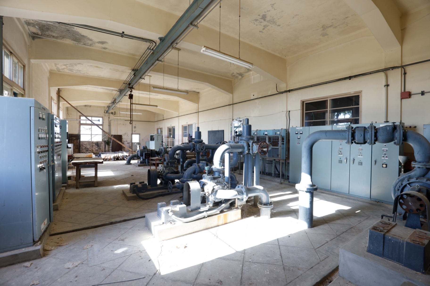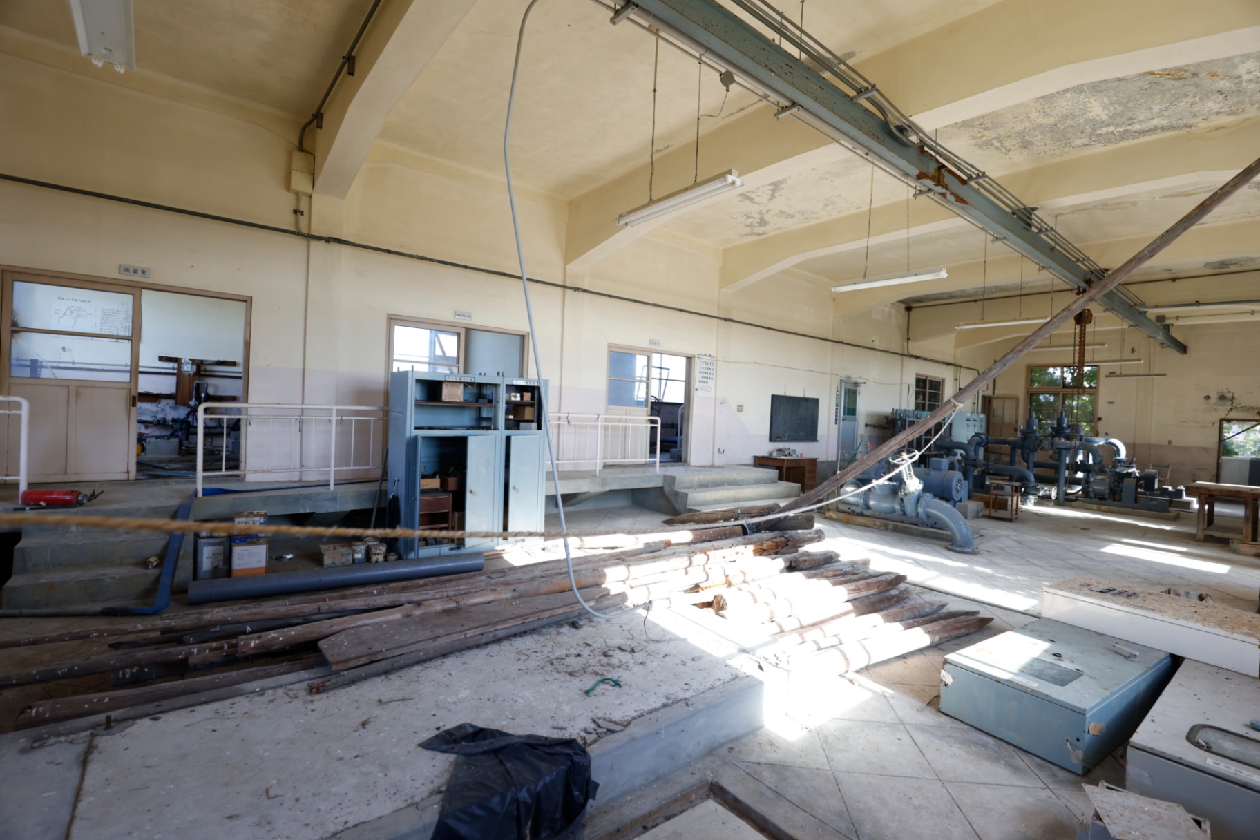 今はまだ、剥き出しの配管や古い設備が並んでいるだけの武骨な空間です。