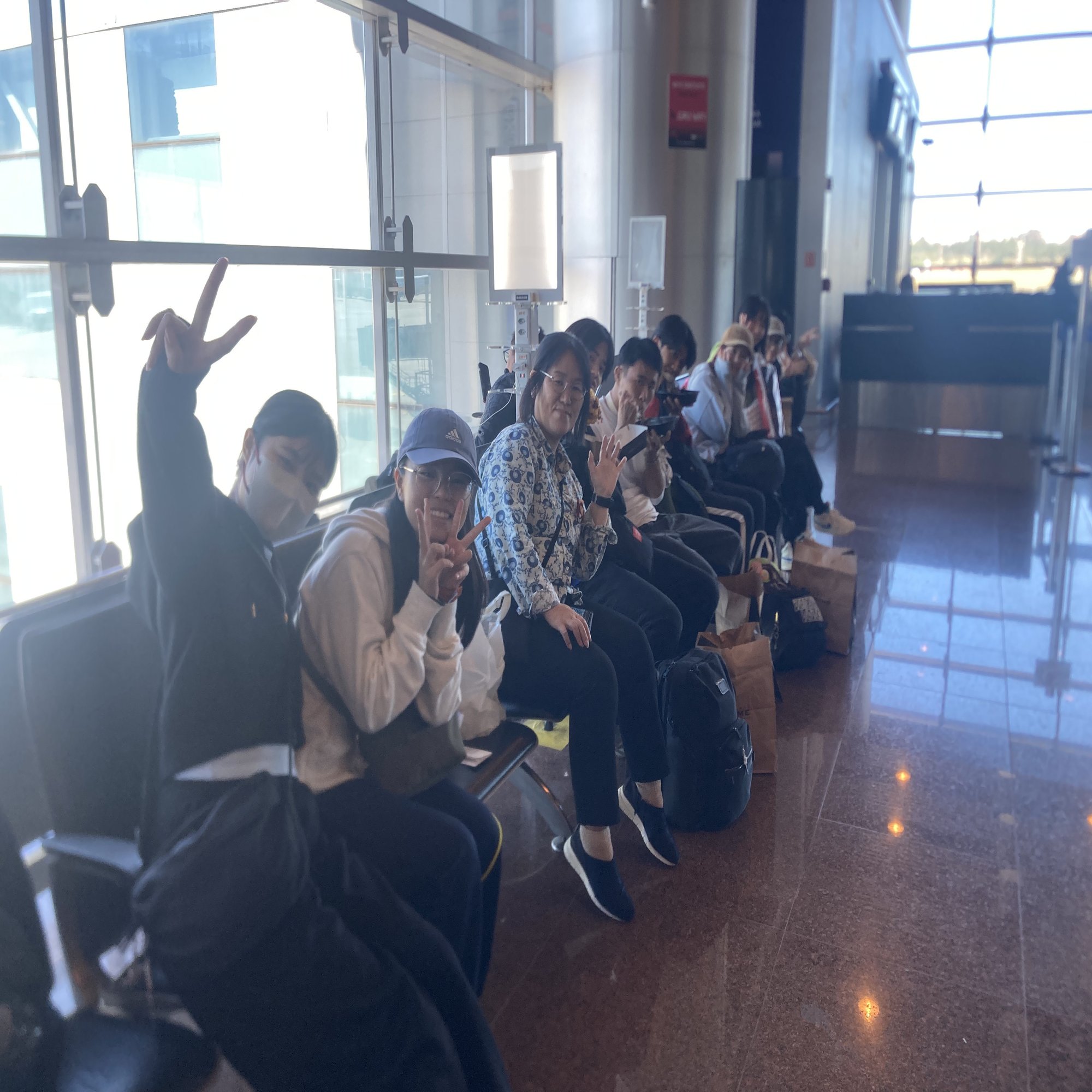 空港での長い待機時間、私達学生9人はまだ打ち解けきることができず不安や心配が大きくなってしまいましたが、「ピンチはチャンス!」と言わんばかりに、この待機時間を利用してお互いに仲を深め合い、思わぬハプニングも臨機応変に楽しく乗り越え、1日の最後には互いに笑い合って笑顔で終える事ができました🌟😋