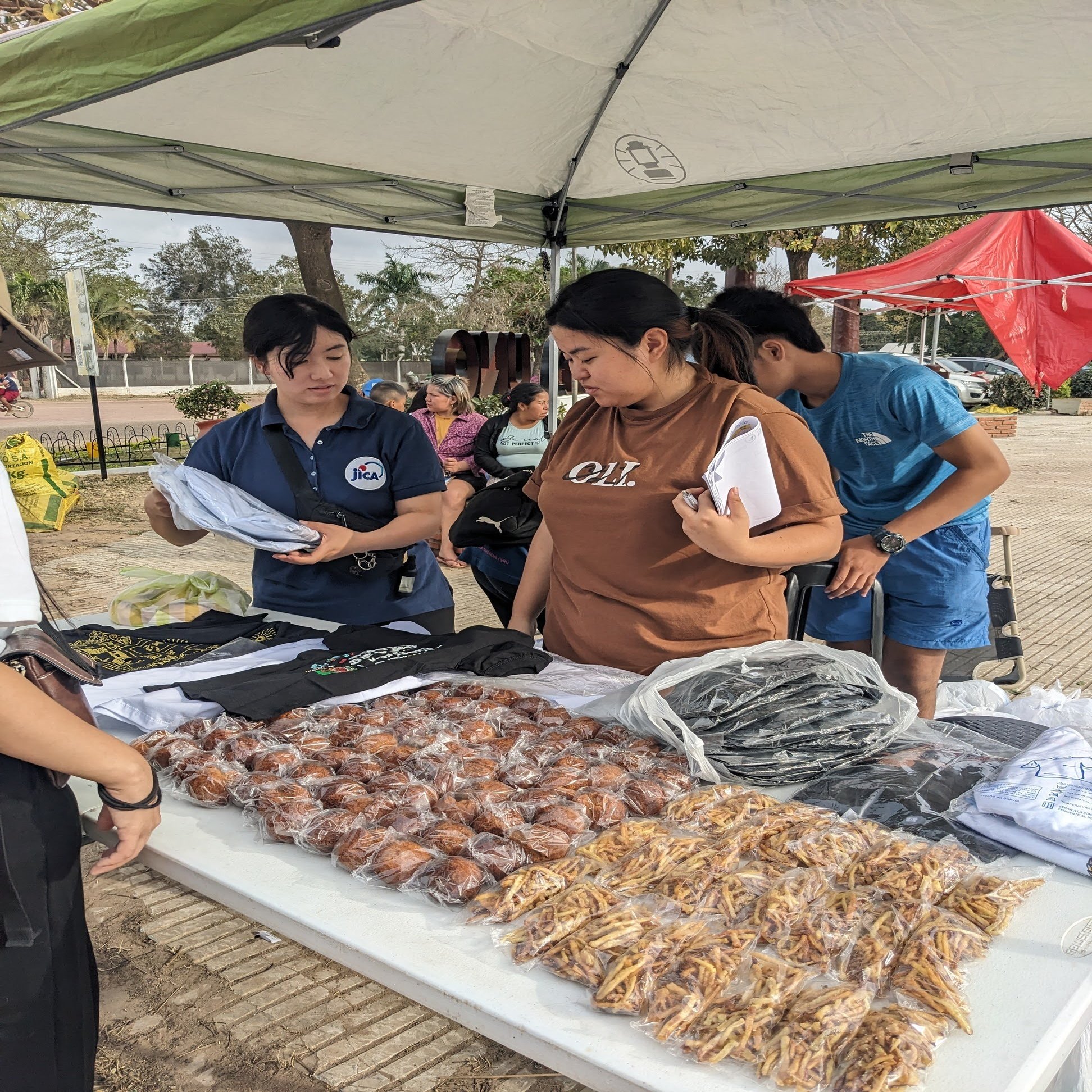 マーケットではTシャツやシーサーなどのお土産や食べ物、スイーツなど様々なお店が並び、朝から盛り上がっていました!家族や友人同士で出店しているお店が多く、マーケットは収入を得る機会だけでなく交流の場にもなっている様子でした。
