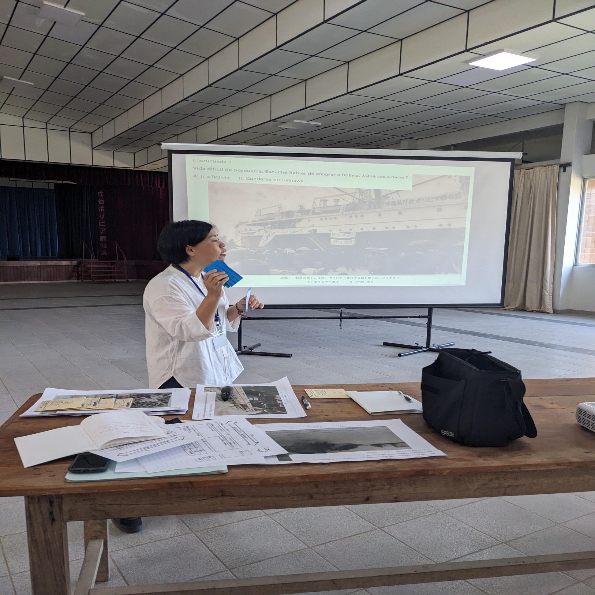 今回、仲間と自作した教材を使い、沖縄県から参加した学生とオキナワ移住地の10代~60代の方たちが対話をしながら移住地の歴史を学ぶワークショップを行いました。