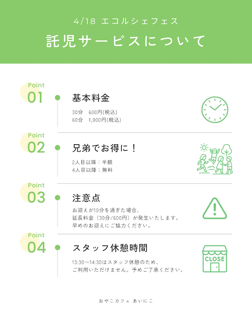 今回は30分あたり600円〜の託児サービスをご用意しています。