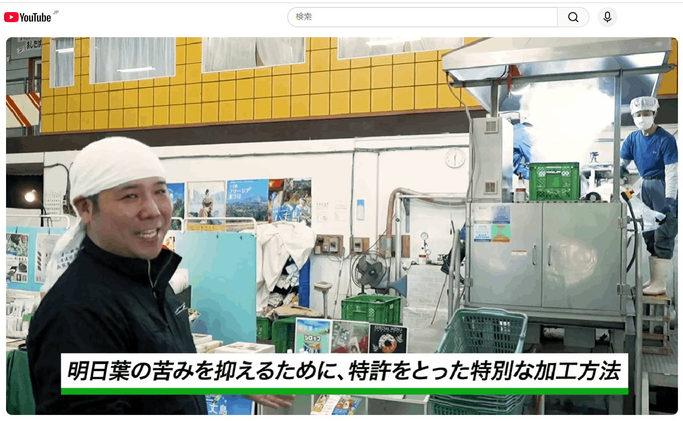 台風被災で、映像の工場はもうありませんが、お2人をご案内できたことは私たちにとっての宝物となりました。動画の最後にジローラモさんに今回の旅で注目したものに「明日葉」と応えていただけたことも嬉しい限り。いつかまたお招きできるように頑張っていきたいと思います。