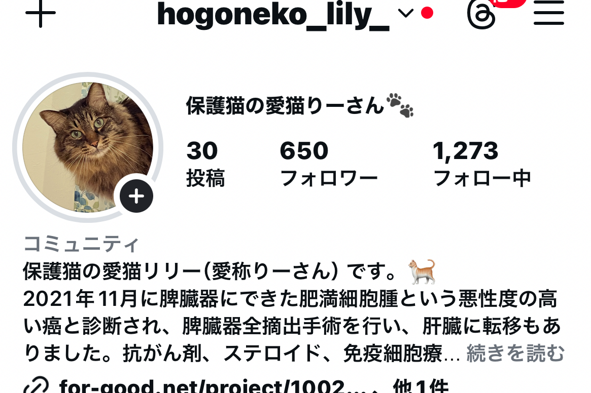 癌で闘病中です!保護猫の愛猫リリーの癌治療支援のご協力をどうかお願いします!