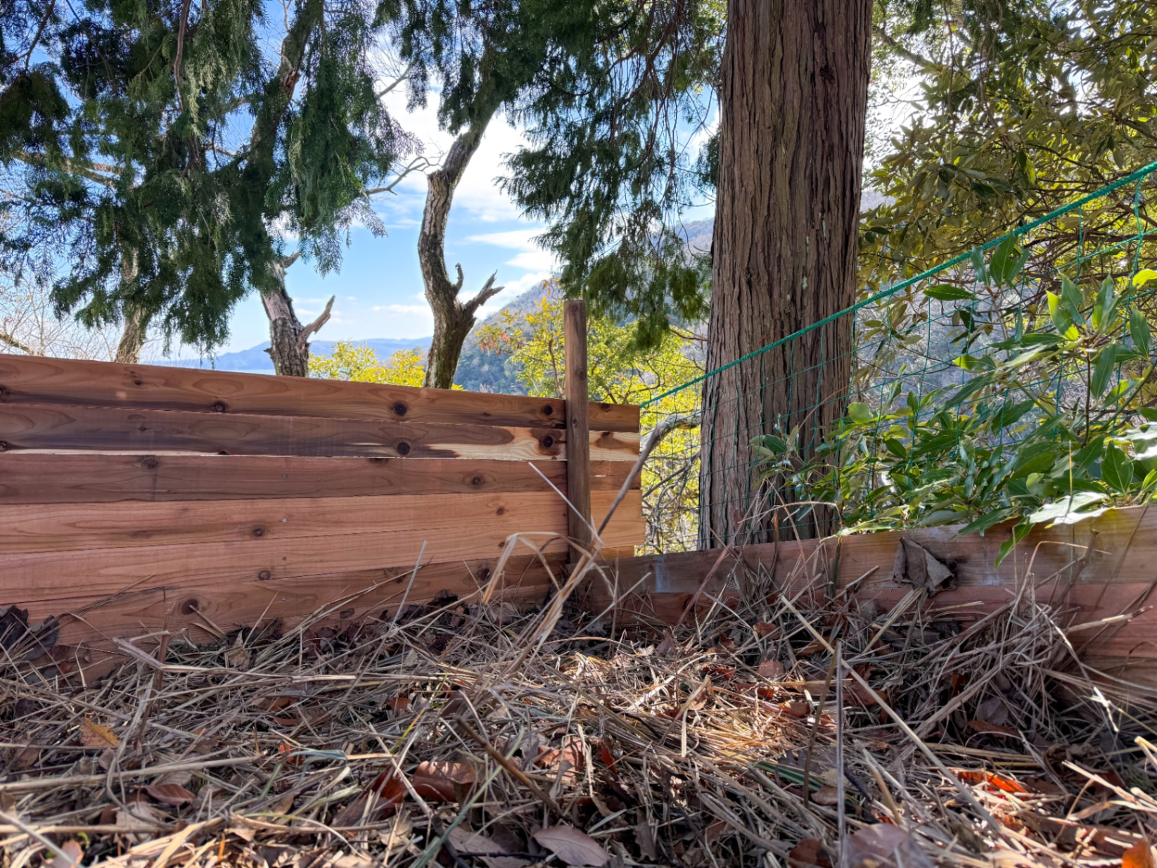 そこで、そこらじゅうに降り積もっている落ち葉を活かし、腐葉土づくりにもチャレンジすることに。
