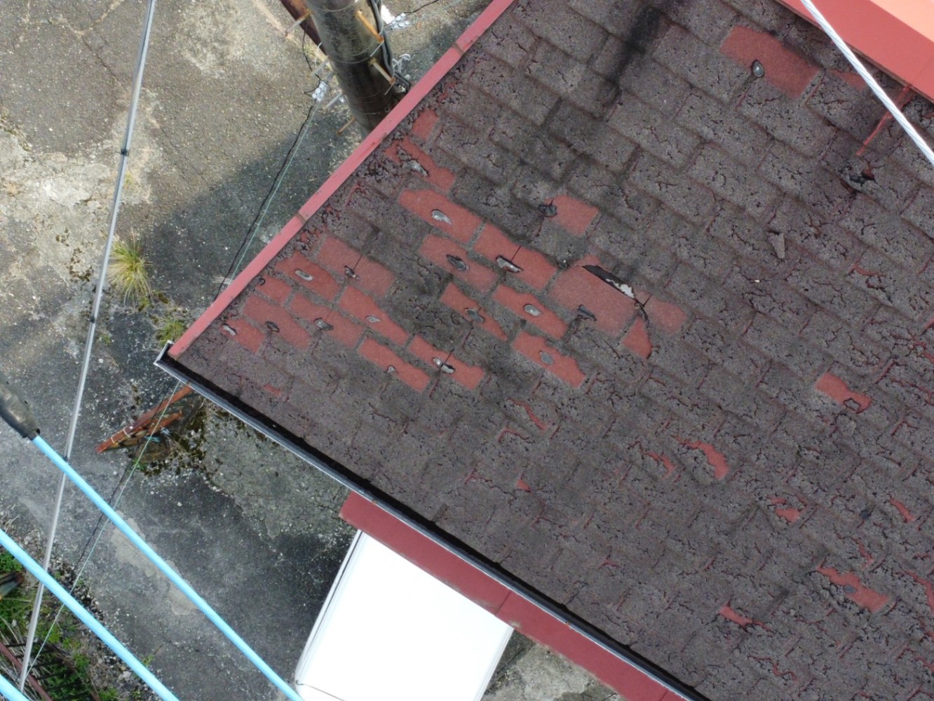 👇下のような屋根の外がはがれて、下地がみえているところから