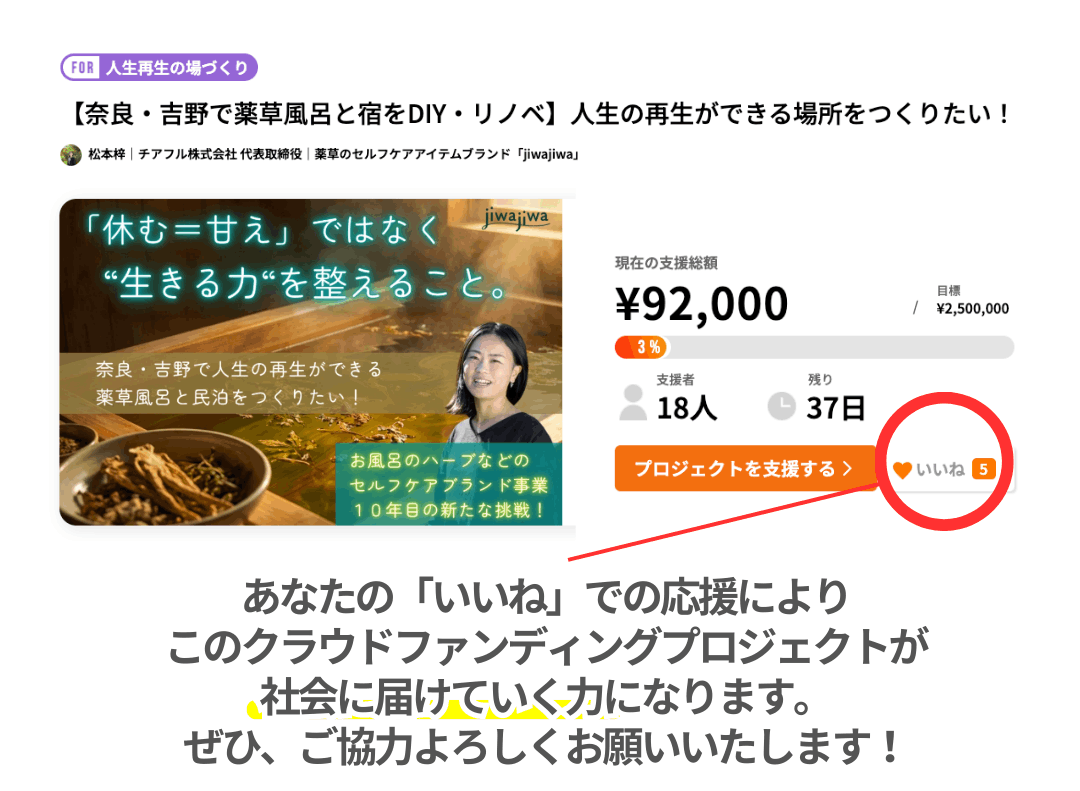 クラウドファンディングは、まだまだ続きます。 この場所は私一人で作るものではなく、同じ価値観を持つ仲間であるみなさまと一緒に作っていく場所です。