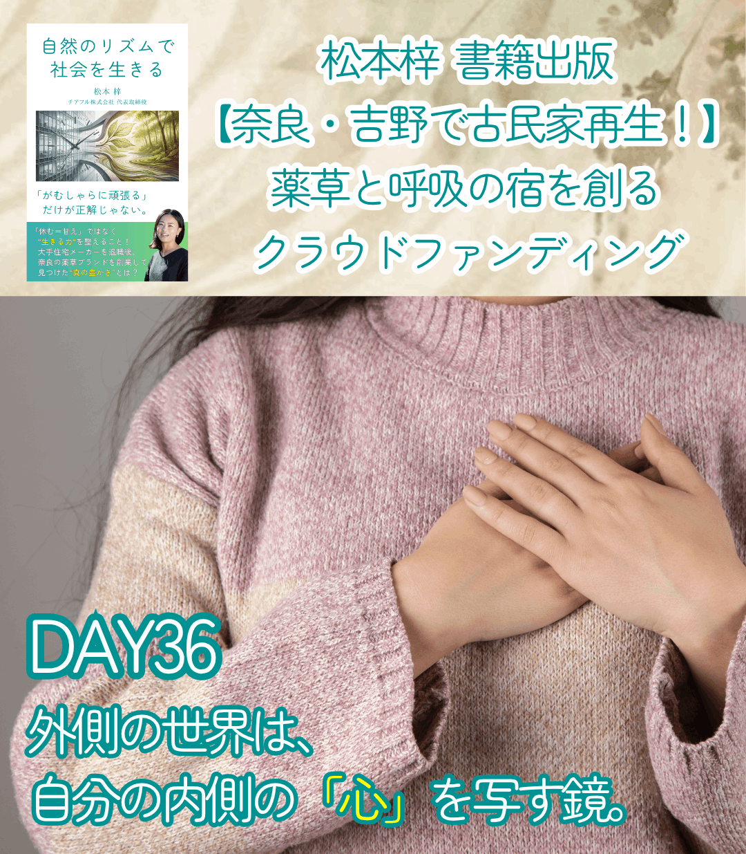 【クラウドファンディングDAY36】外側の世界は、 自分の内側の「心」を写す鏡。