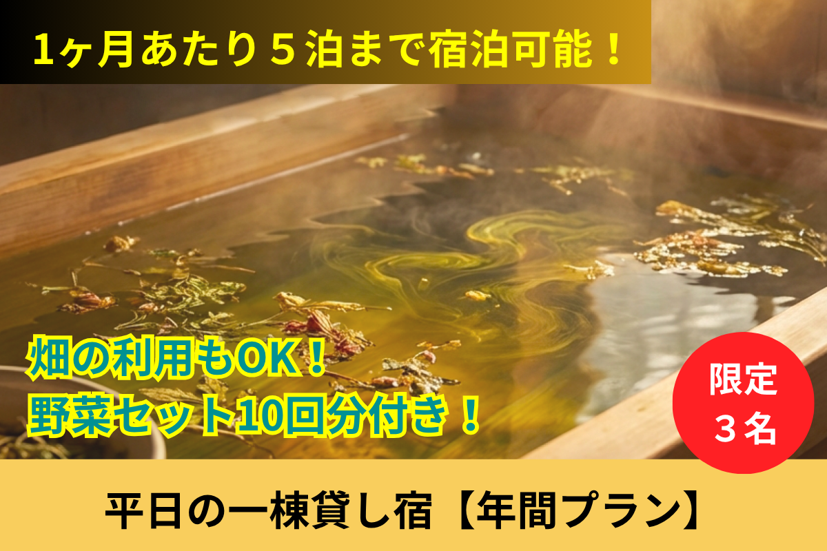 【先行限定3名】吉野で「余白」を取り戻す。一棟貸し宿&薬草風呂 モニター宿泊プラン(月最大5泊・畑利用OK・野菜セット付)!