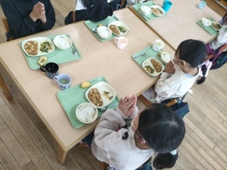 2月17日にすこやかこども園に行って、園児たちが食べている様子を見学させていただきました。