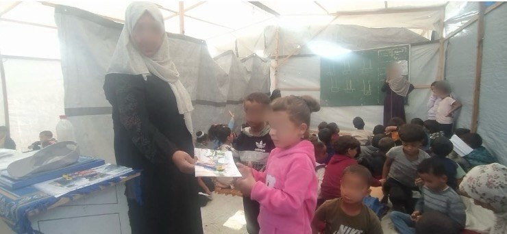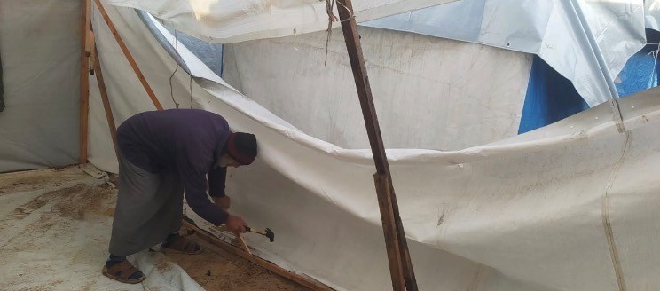 その後も、2度の停戦合意に至るまでの間、イスラエルによる攻撃のたび一時的な避難を繰り返しながら、カレッドさんと教員たちは、「東ハーンユニスでの学びを止めない」という強い意志のもと、現在に至るまでテントでの学習スペースを運営しています。しかし2026年1月初めには、厳しい冬の雨風の影響でテントの損傷が進み、いすや机もないまま、子供たちが地面に座って授業を受けているという深刻な状況が報告されています。