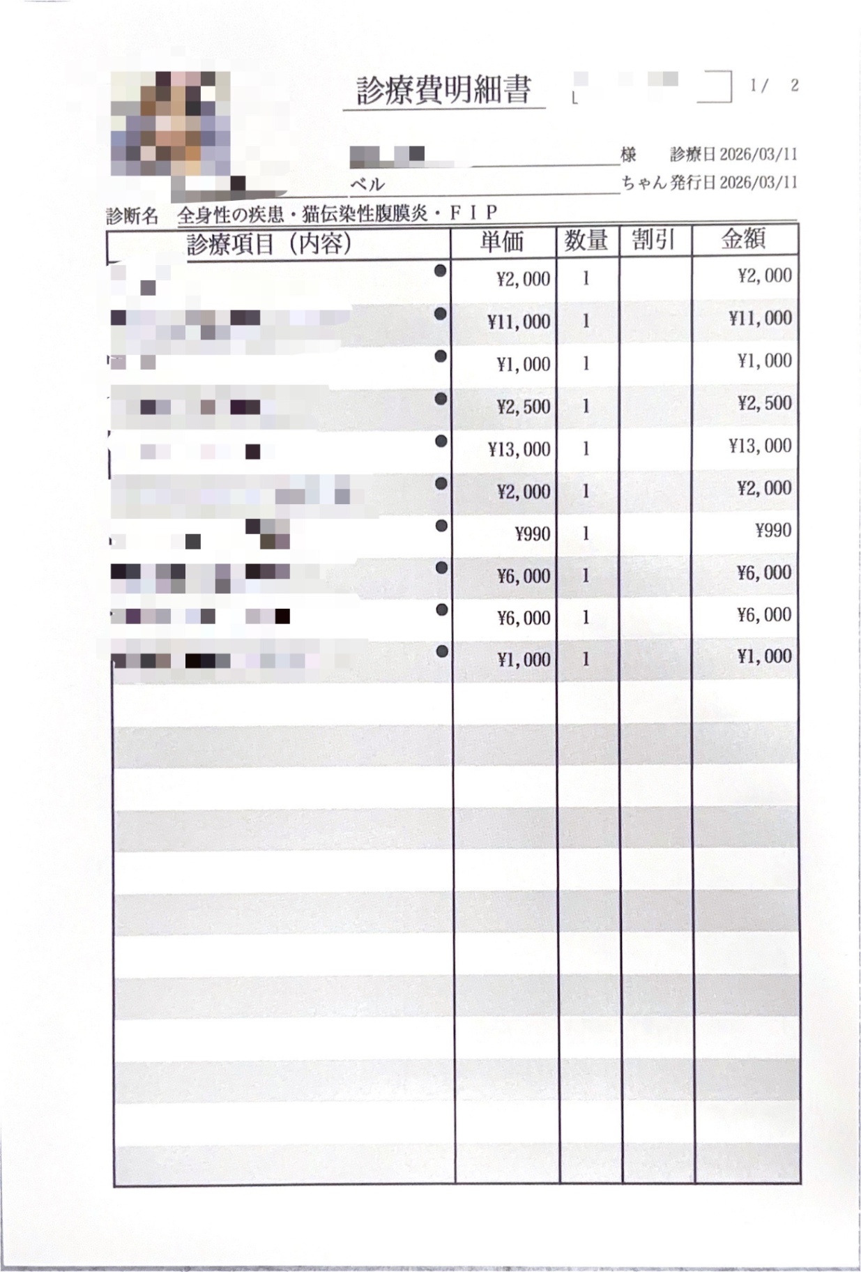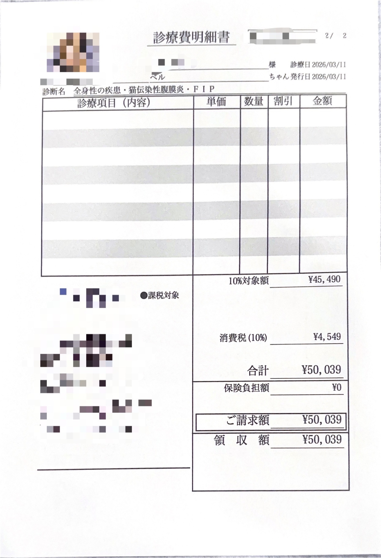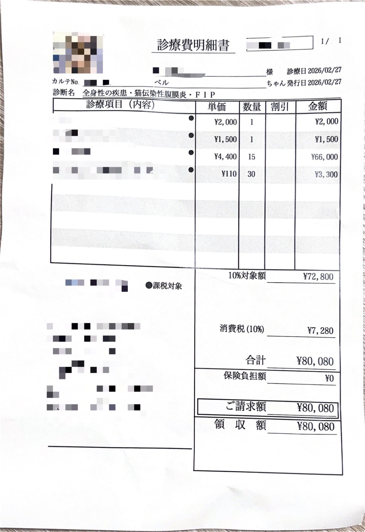 2/27の通院と本日の通院に関する費用についてご報告いたします。