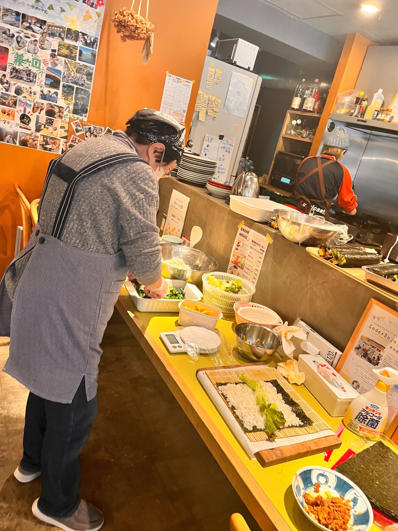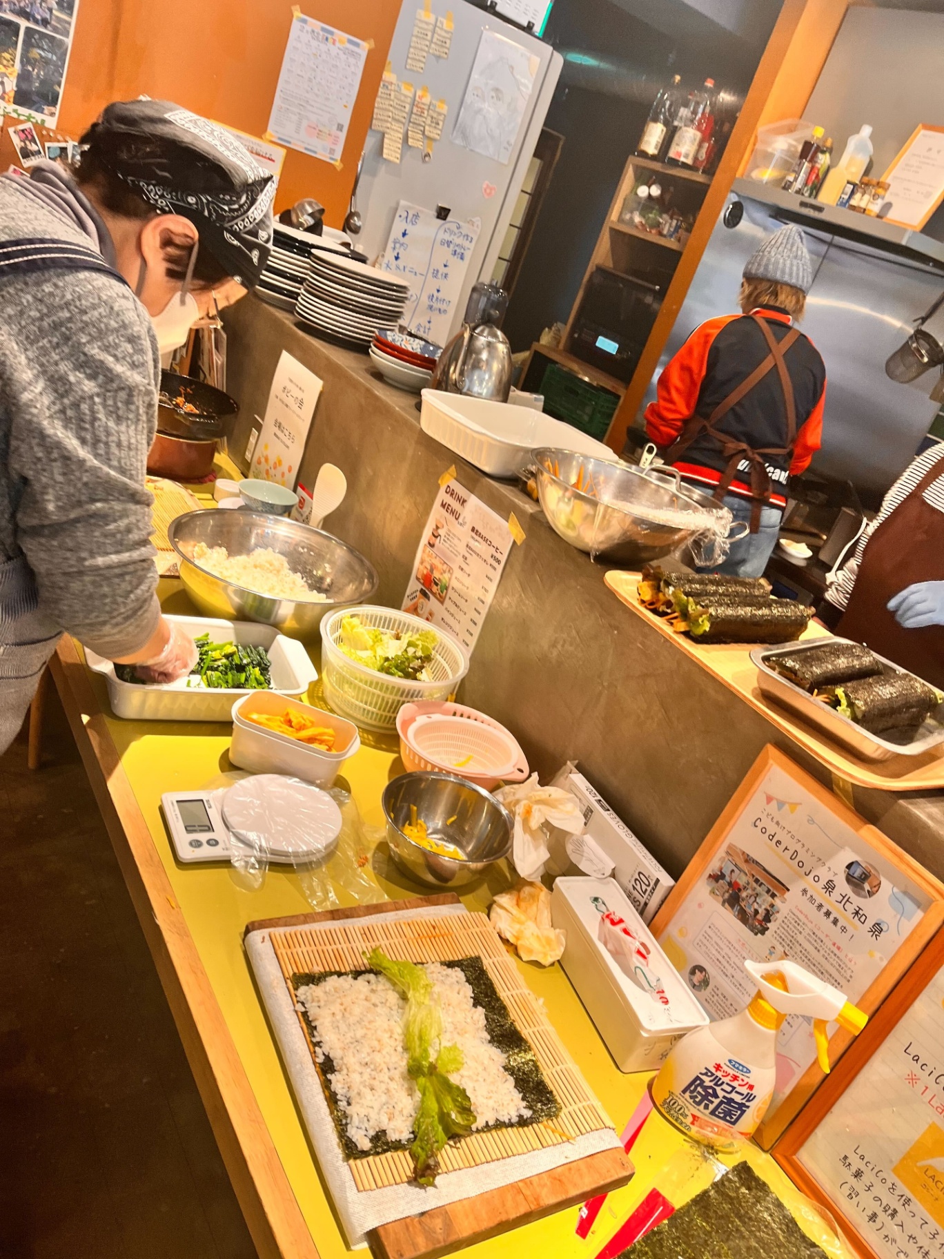 2月3日節分の日、泉北BASEの一階にあるでんでんカフェでは、毎年、恵方巻を販売しています。お肉たっぷり韓国風巻き寿司の『キンパ』、野菜たっぷり昔ながらのシンプルな『恵方巻』。どちらもカフェで手作りしています。