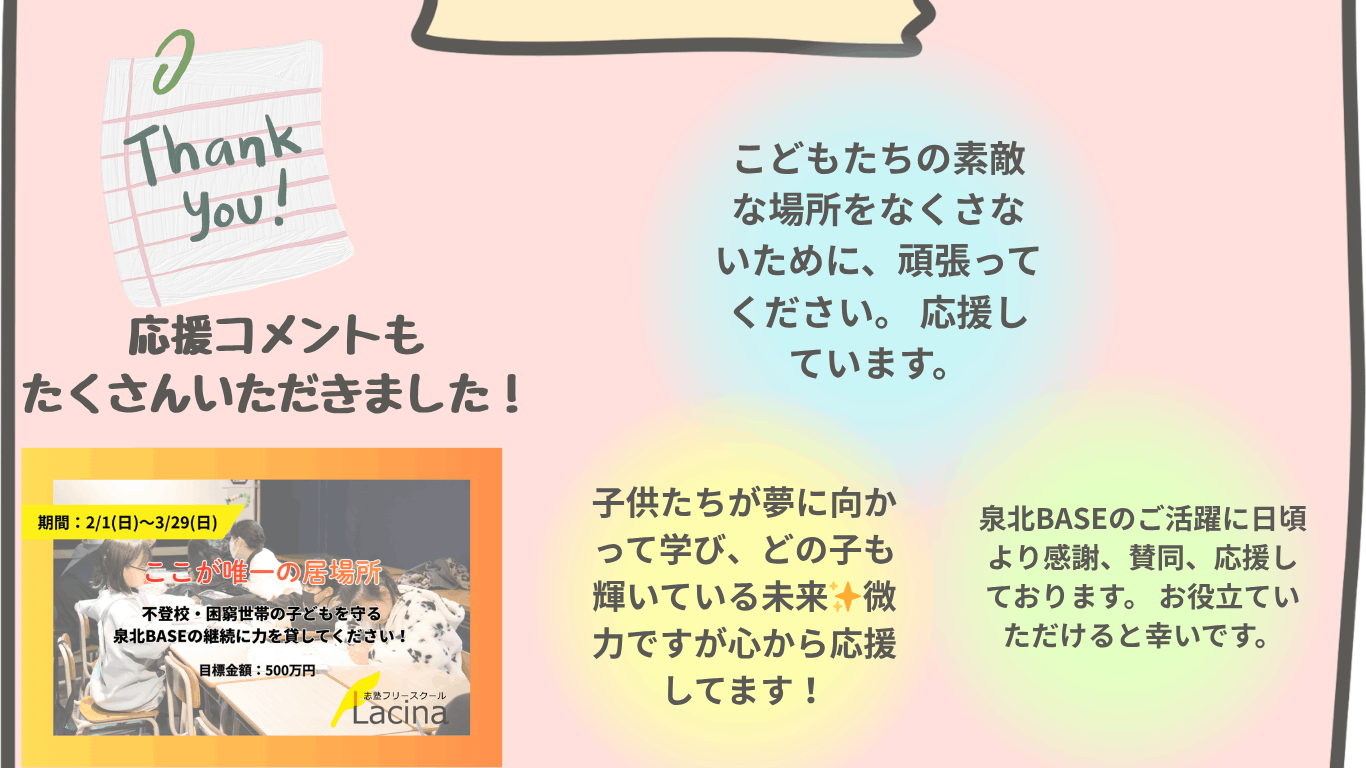 そして、支援していただいた方が200人を超えました。こんなにたくさんの方がラシーナを応援していただいたということが、改めて感じました。