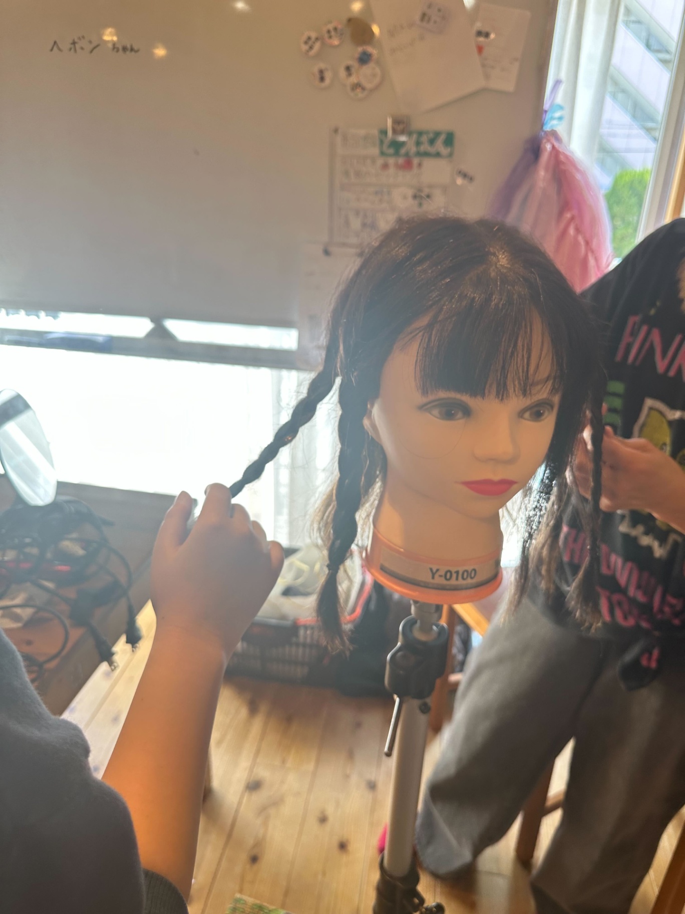 女子チームは、まずはヘアマネキンで編み込みの練習からスタート!