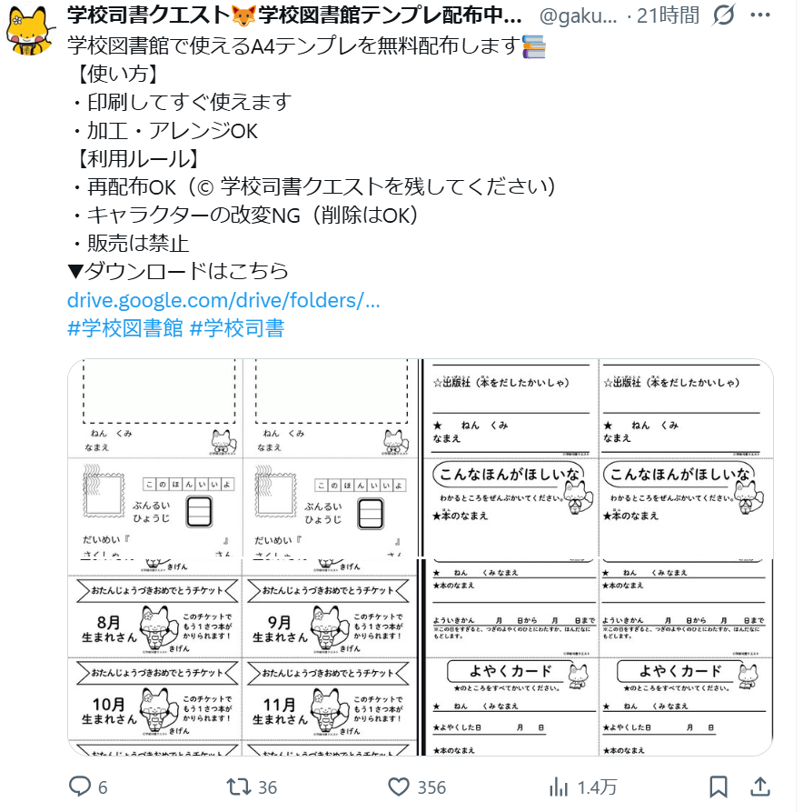 【お知らせ】学校図書館で使える無料テンプレート集(Googleドライブ・Canva)の公開配布について