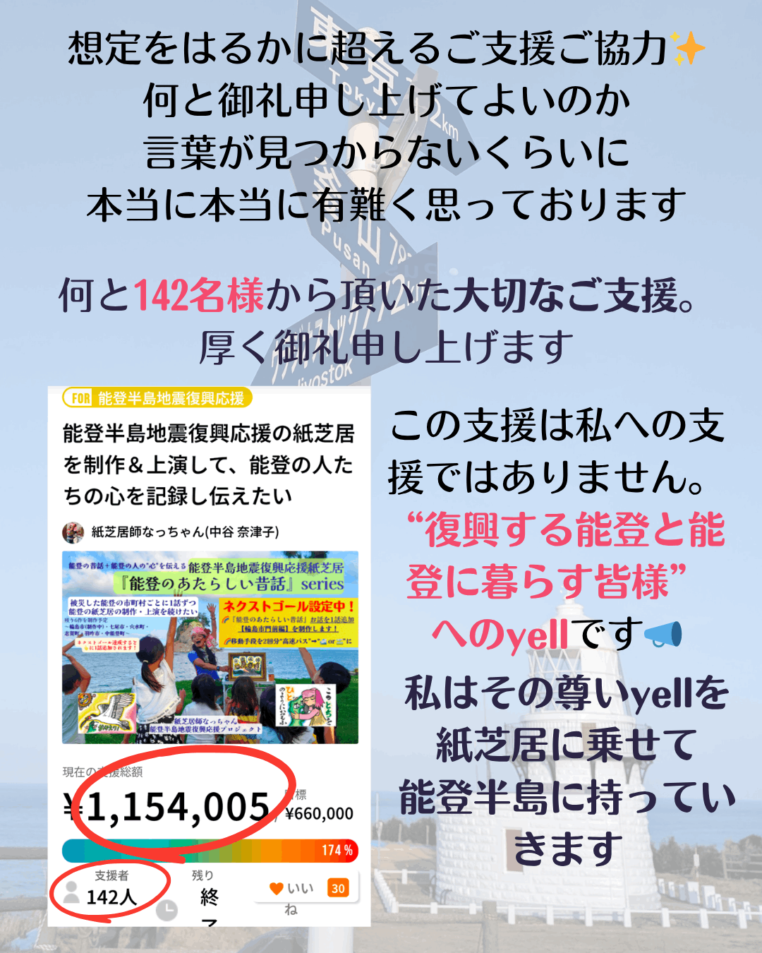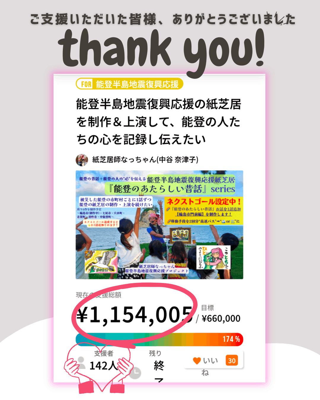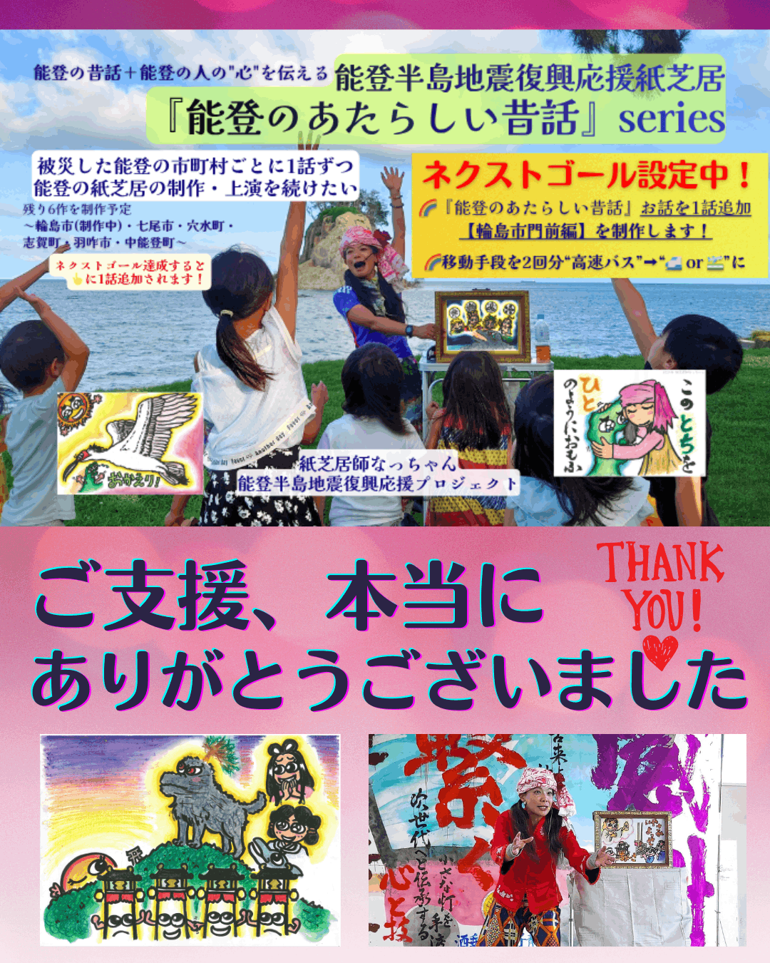 紙芝居師なっちゃん能登半島復興応援紙芝居クラウドファンディングに