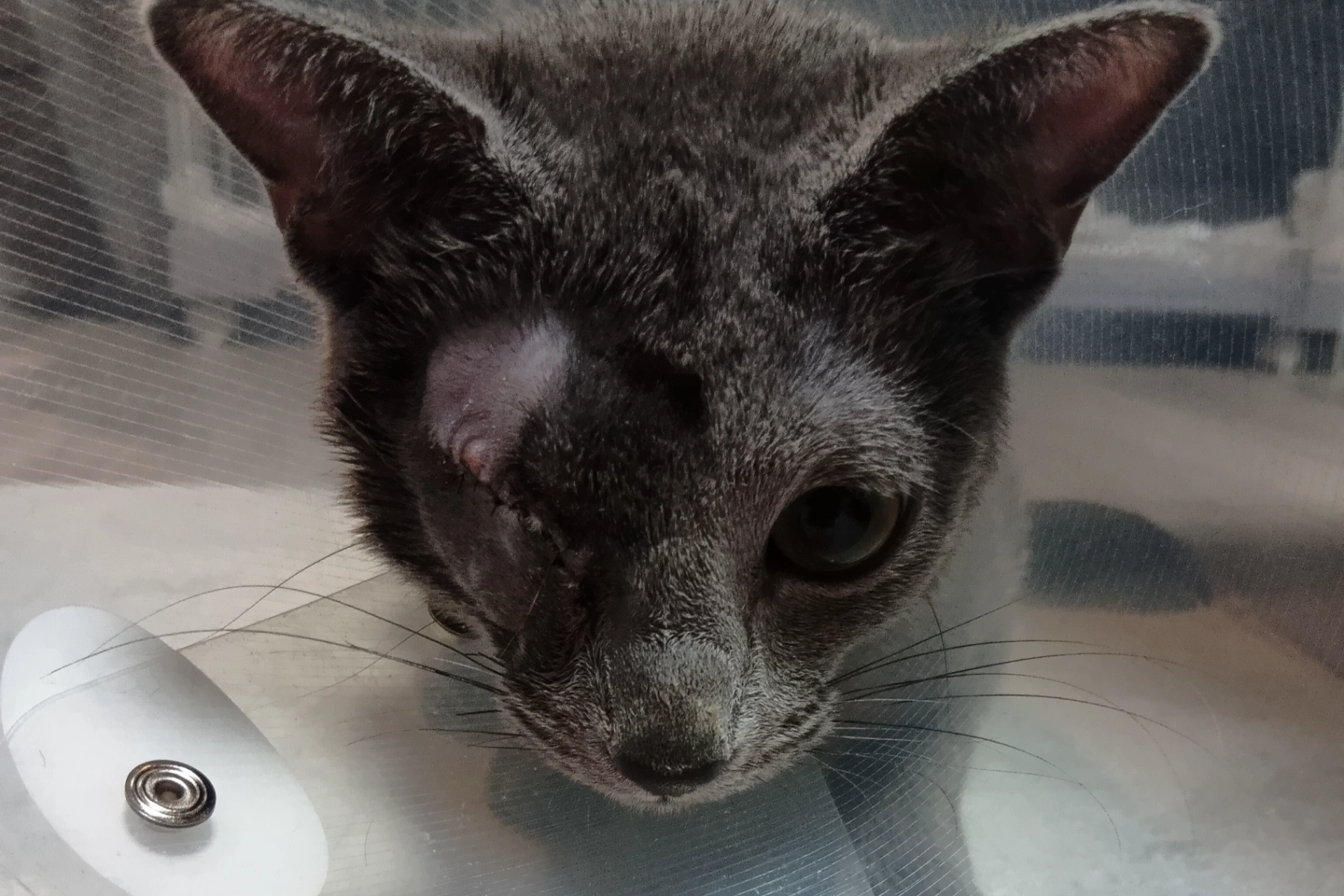 今日受診しました。獣医師から右眼球を摘出したことで摘出部分が陥没しない様にするため、摘出部に網目のものを入れて空洞にならないようにしているとのことでした。手術の傷口は問題なく経過している様で、ホッとしています。傷口のかゆみがあり、掻こうとしてエリザベスカラーをカリカリ搔いていますが、傷口が守られています。エリザベスカラーを外さないことを願う日々です。