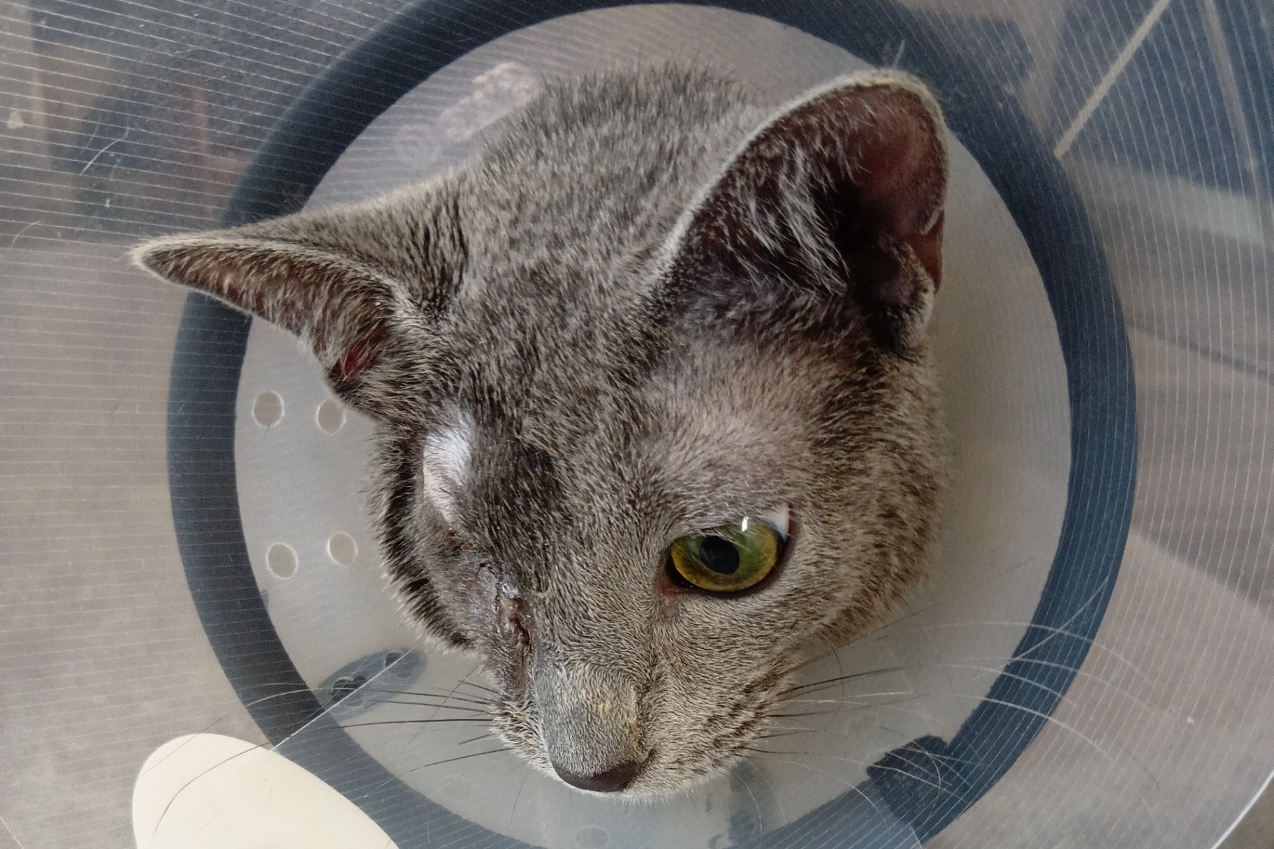 エリザベスカラーを外すことなく過ごせているため手術後の傷口が守れています。3月15日抜糸予定で早くエリザベスカラーが取れて自由に動くことができる日が待ち遠しいレオンです。
