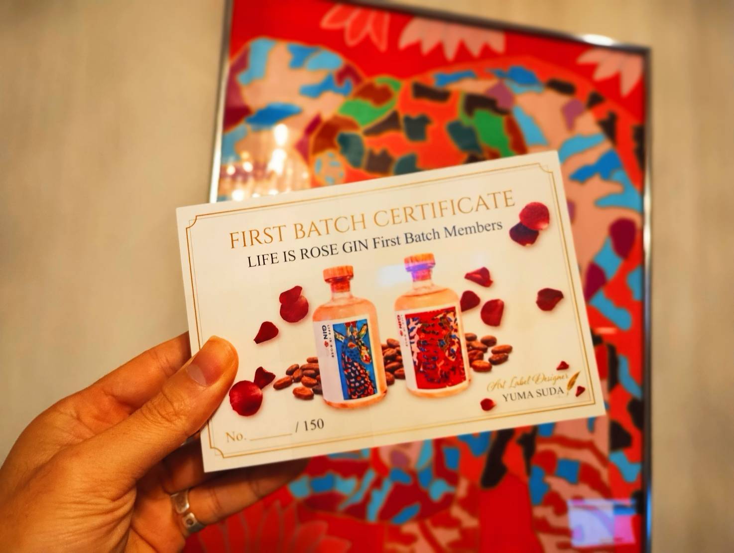 あなたは、このジンが世に出る最初の瞬間を共にしてくださった「ファーストバッチ・メンバー」です。150本限定、シリアルナンバー入りの証明書です。ぜひ大切にしていただけたら嬉しいです🌹