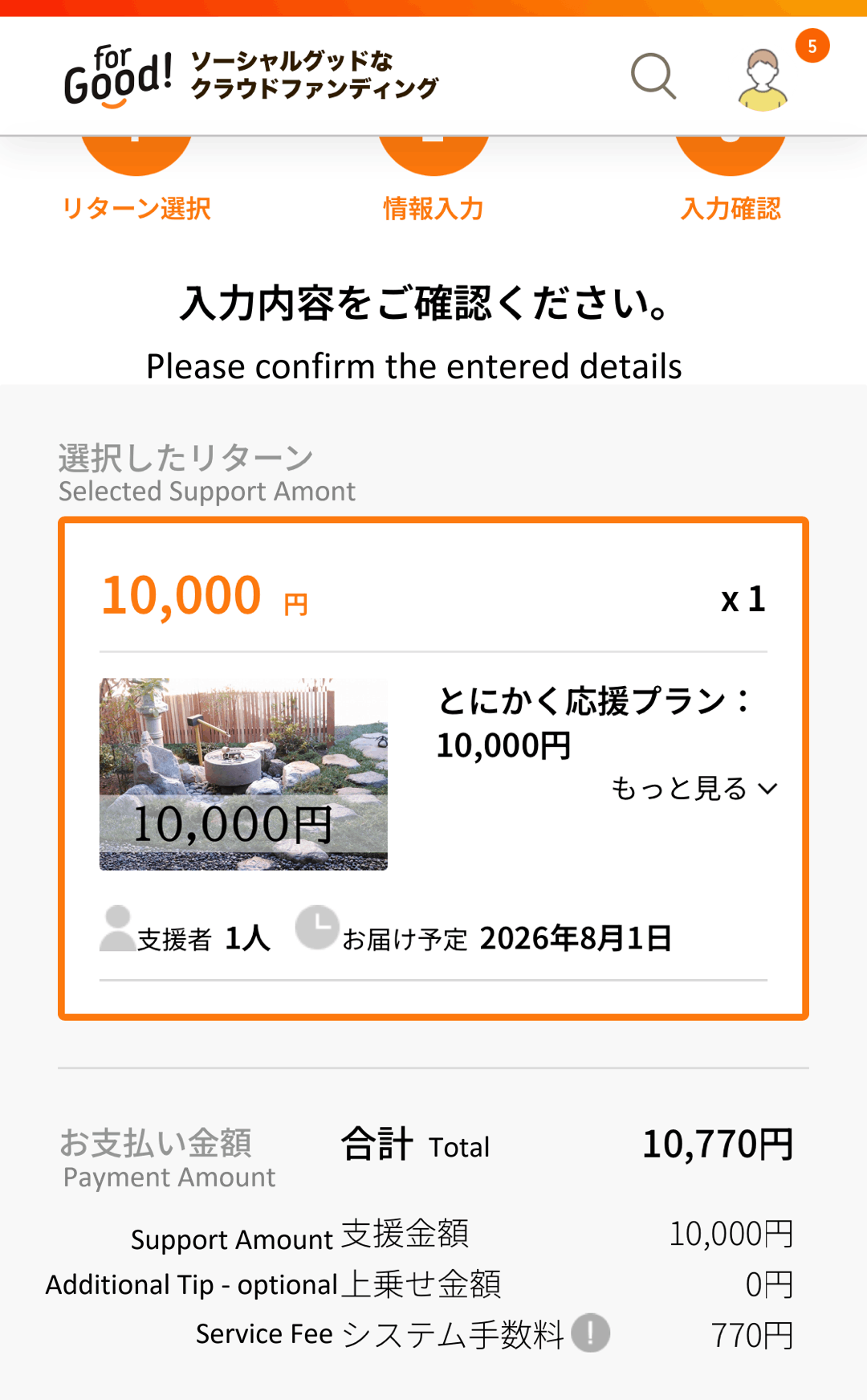 プロジェクト実行者が支援金を全額受け取れるよう、支援者さまからのシステム利用料(220円+決済手数料5%)により運営しています。