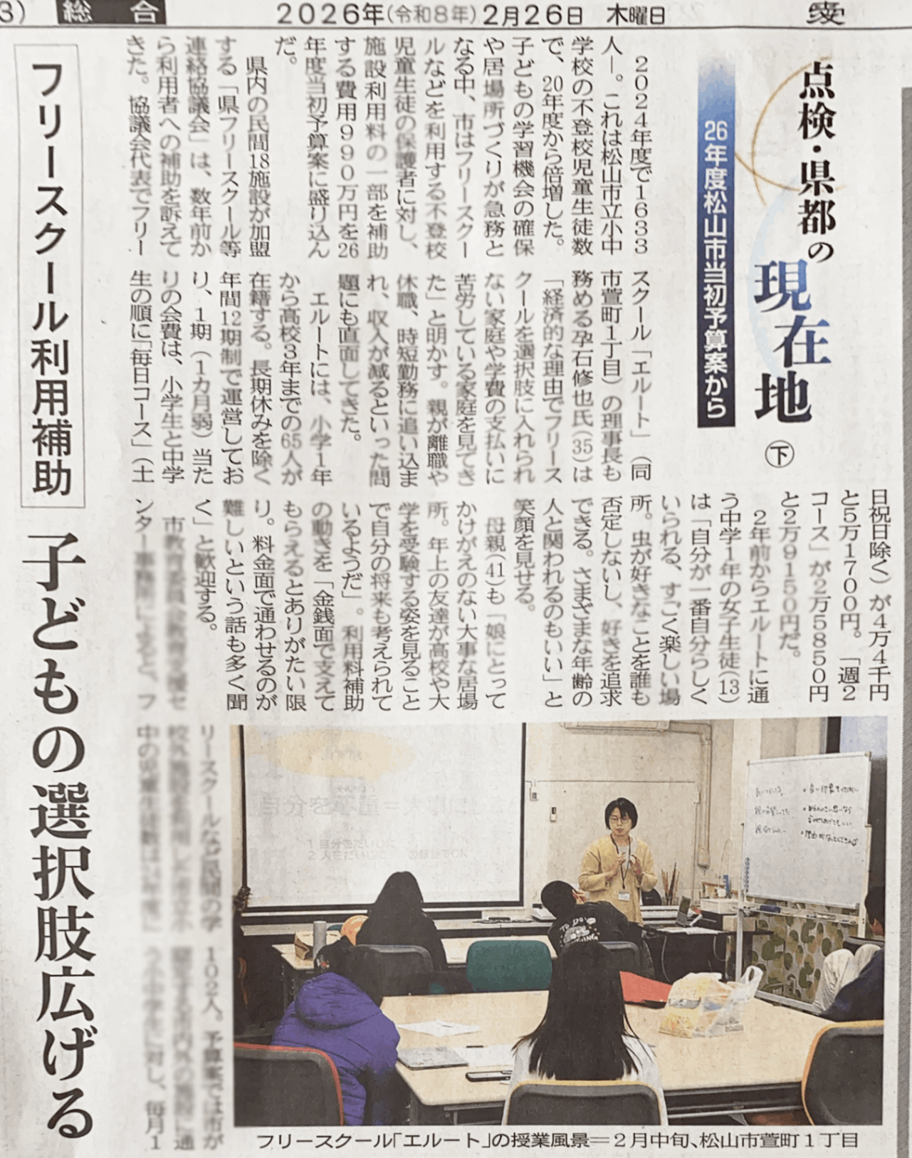 その積み重ねの先に、いま、松山市が保護者に対してフリースクール利用補助の予算案を提出している、という現実があります。