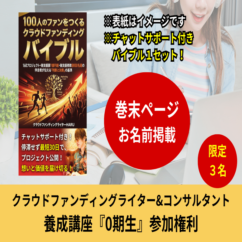 今、クラウドファンディングチャレンジャーを「フルサポートで伴走」できるのは、月5名が限界です・・・。だからこそ、あさみさんから学んだマーケティングや、育み・培ってきたライティング・マインドセットを伝える「クラウドファンディングライター・コンサルタント養成講座(限定3名)」を今回初めて「リターン」にご用意しています。