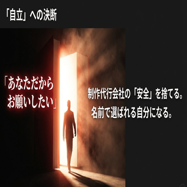 「制作代行会社で経験を積ませてもらった。次は、個人として依頼を受け、自立していく時だ」