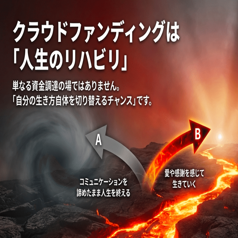 クラウドファンディングという挑戦の機会は、単なる資金調達の場ではなく、「自分の生き方自体を切り替えるチャンス」でもあります。