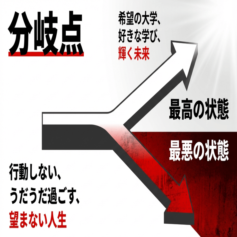 ②最悪の状態: 行動せず、うだうだ過ごした結果、望まない人生を送っている未来。