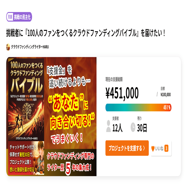 挑戦者に『100人のファンをつくるクラウドファンディングバイブル』を届けたい!