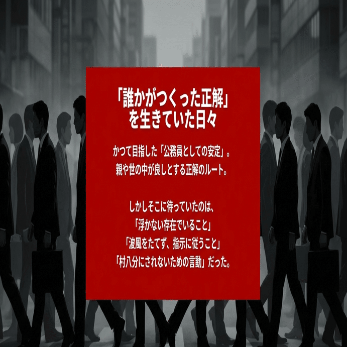 自分自身、かつて学生時代は「公務員として安定して働く人生」というゴールを目指していました。それは親や世の中が良しとする「正解のルート」でした。その方向性で進むと決めたのは自分です。