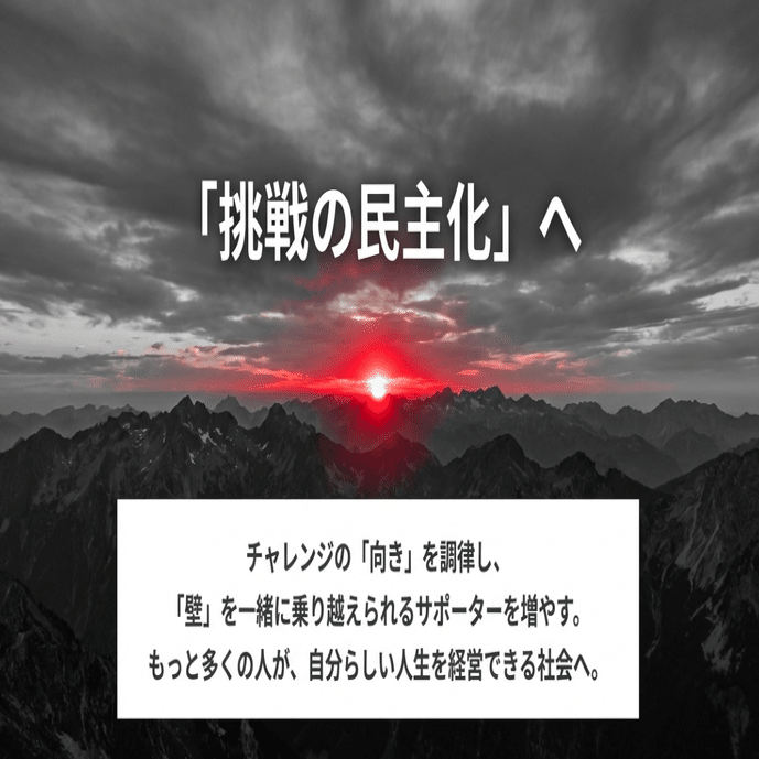 また、このバイブルを通じて、チャレンジの「向き」を調律し、「壁」を一緒に乗り越えられるサポーターを増やしたいと考えています。