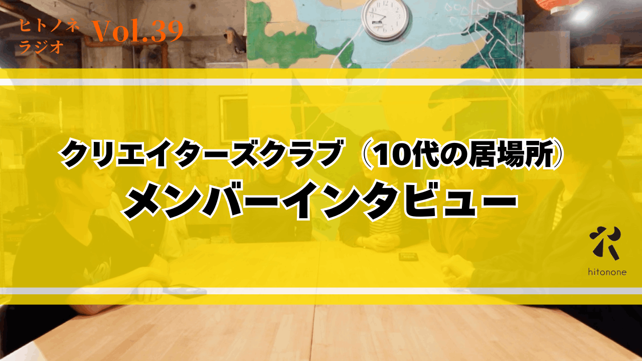 今日は、クリエイターズクラブ(ヒトノネの10代の居場所)メンバーの声をご紹介します。