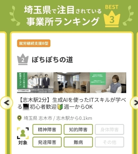 1.「埼玉県で注目されている事業所ランキング」(LITALICO仕事ナビ)にて、2位にランクインしました!!(なんと700以上ある埼玉県のB型事業所の中の2位です。本当にびっくりです)