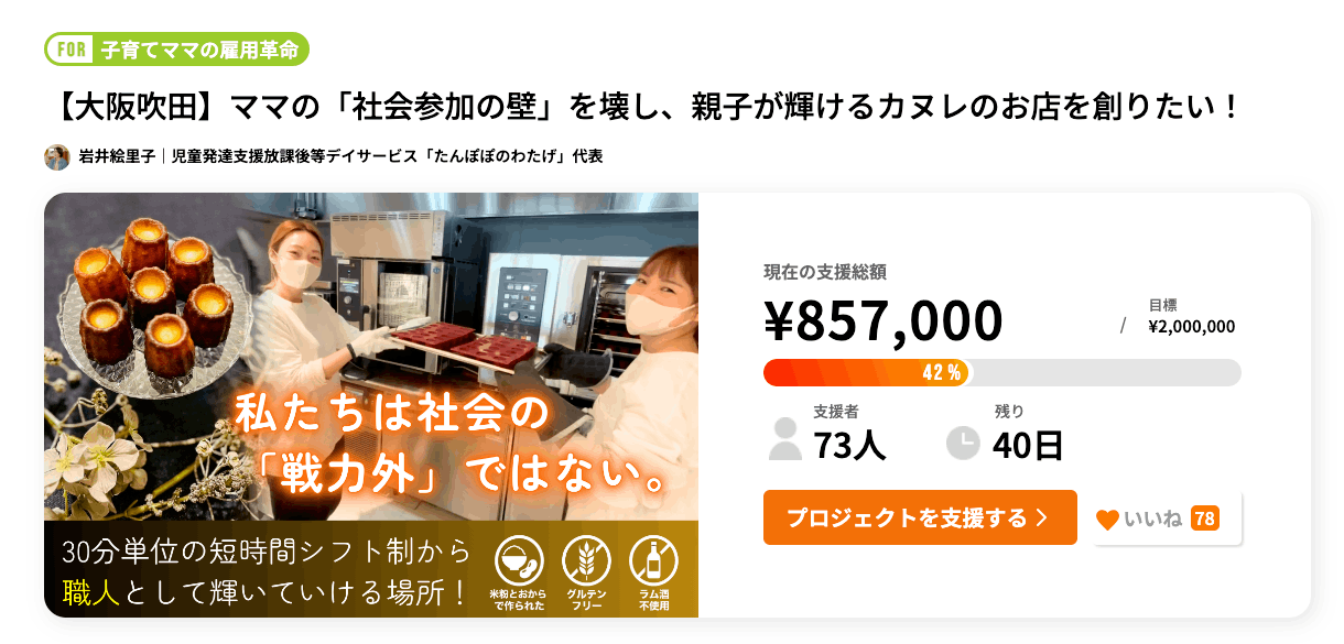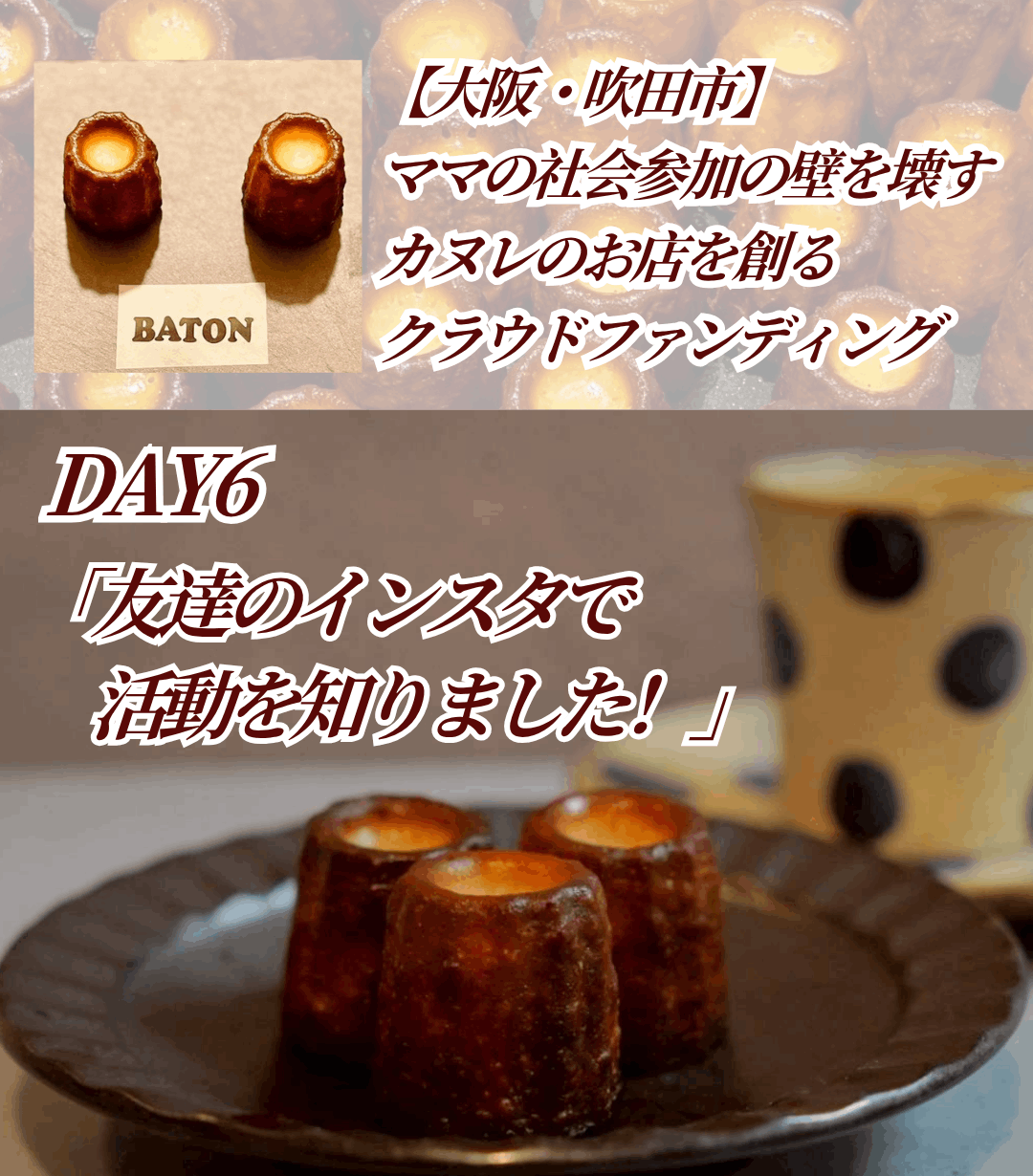 【大阪吹田】ママの「社会参加の壁」を壊し、親子が輝けるカヌレのお店を創りたい!