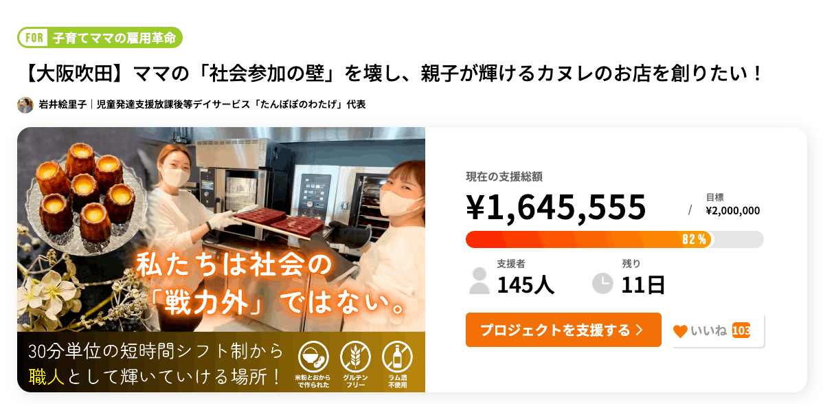 【大阪吹田】ママの「社会参加の壁」を壊し、親子が輝けるカヌレのお店を創りたい!