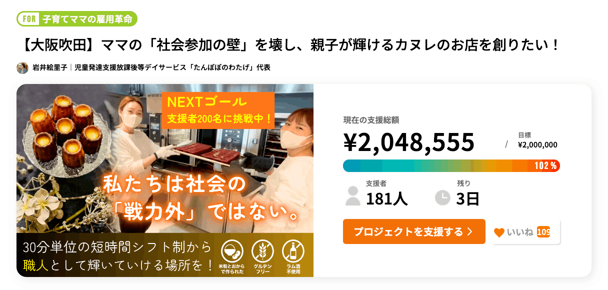 【大阪吹田】ママの「社会参加の壁」を壊し、親子が輝けるカヌレのお店を創りたい!