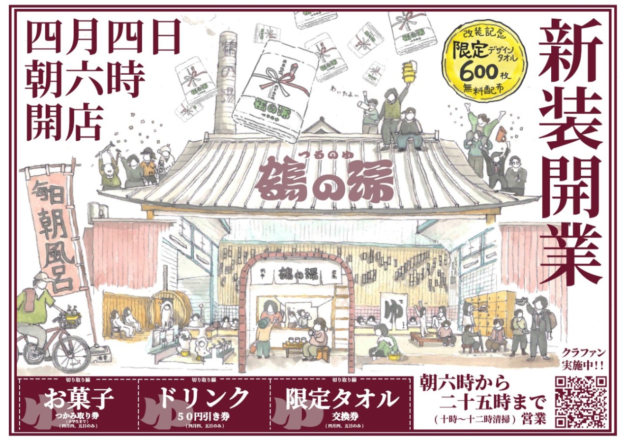 みなさんのご支援のおかげで、ついに4月4日(土)朝6時リニューアルオープンできそうです!今回は新装開店を記念し、オリジナル熨斗付きロゴタオルを無料配布します。