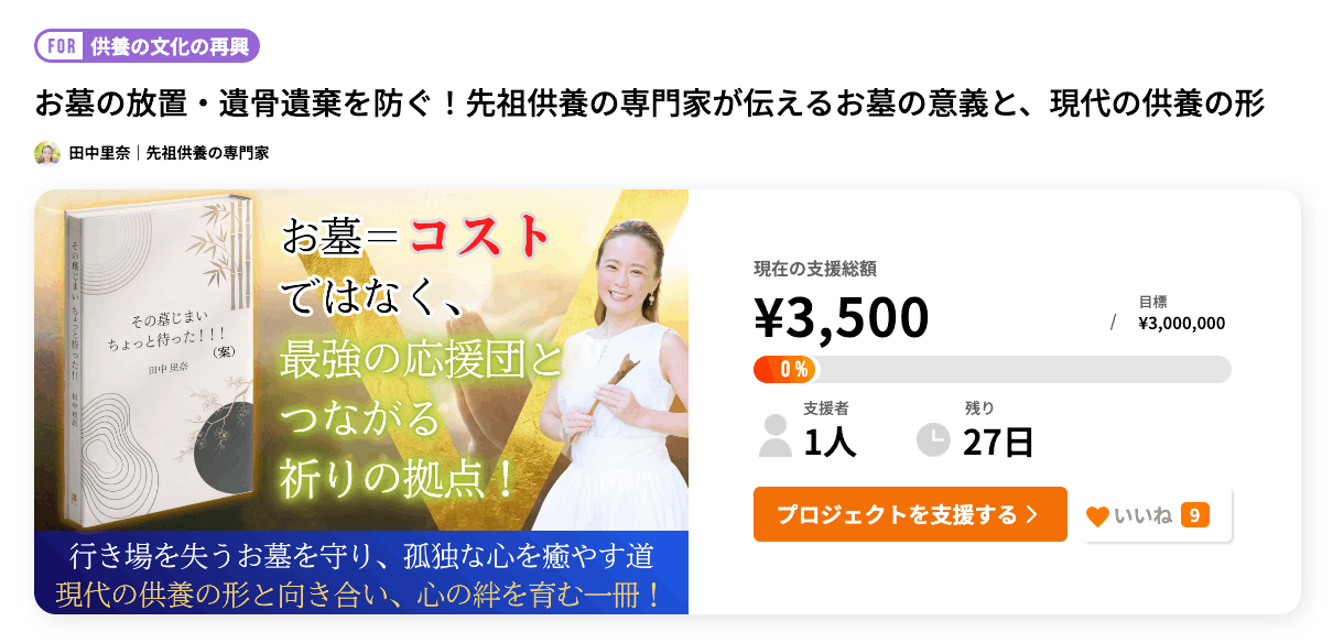 【クラウドファンディング1日が経過!】お墓は「コスト」ではなく「心の拠点」